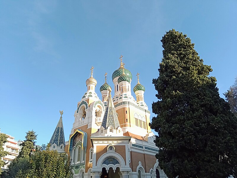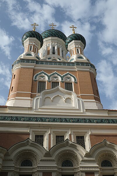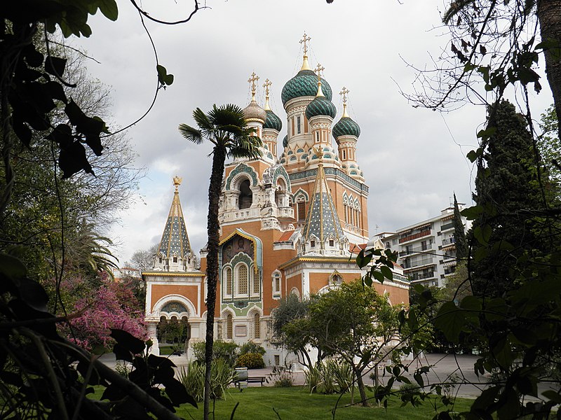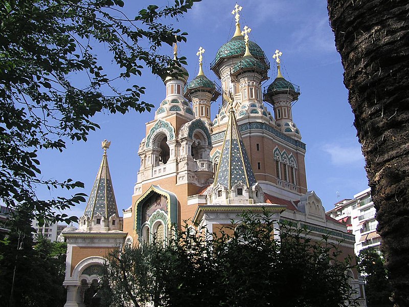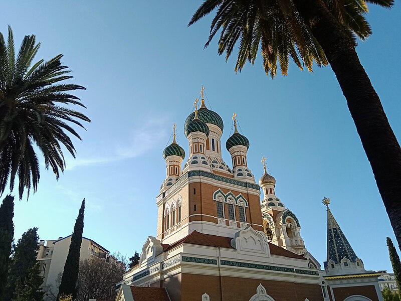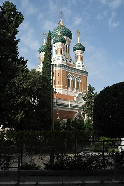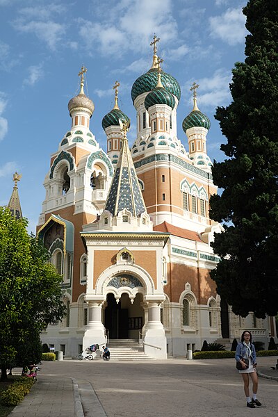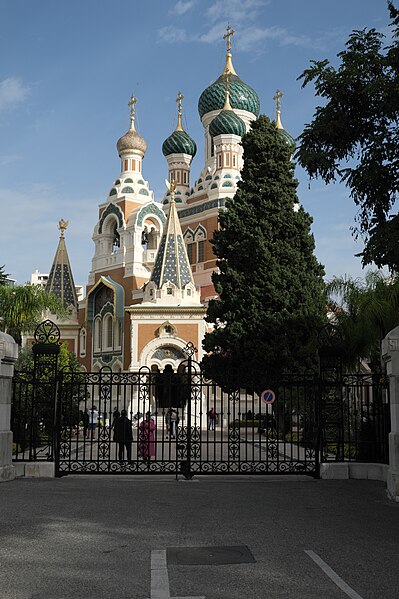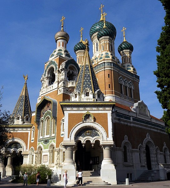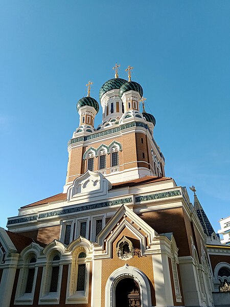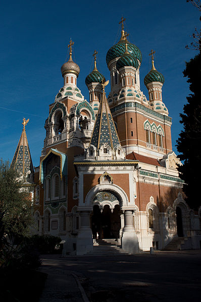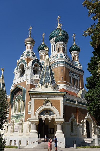 La cathédrale orthodoxe russe Saint‑Nicolas et la chapelle du tsarévitch Nicolas Alexandrovitch se trouvent à Nice, dans les Alpes‑Maritimes. La chapelle commémorative, élevée en mémoire du tsarévitch mort en 1865, a été construite en style byzantin de 1867 à 1868 selon les plans de David Grimm. La présence d'une importante colonie russe à Nice dans la seconde moitié du XIXe siècle a motivé, en 1856, une souscription lancée par la tsarine Alexandra Fedorovna pour édifier l'église Saint‑Nicolas‑et‑Sainte‑Alexandra, inaugurée rue Longchamp puis rapidement devenue insuffisante. Pour répondre aux besoins de la communauté, la construction de la cathédrale Saint‑Nicolas a commencé en 1903. L'architecte Mikhaïl Préobrajenski, professeur à l'Académie impériale des Beaux‑Arts de Saint‑Pétersbourg, s'y est inspiré des églises à cinq coupoles de la fin du XVIe siècle de la région de Moscou. La réalisation a été rendue possible grâce à l'appui du tsar Nicolas II, qui autorisa l'édification dans le parc de la villa Bermond, alors propriété impériale. La cathédrale, consacrée le 18 décembre 1912, présente des coupoles en béton armé; son iconostase et plusieurs icônes sont l'œuvre du peintre Léonide Pianovsky. Située au centre de la ville, près du boulevard du Tzaréwitch et à l'extrémité de l'avenue Nicolas II, elle figure parmi les plus importants édifices orthodoxes russes hors de Russie. L'édifice a été classé au titre des monuments historiques le 11 août 1987 et a reçu le label « Patrimoine du XXe siècle ». Architectoniquement, la cathédrale est conçue en croix grecque avec un corps central cubique de 20 mètres de côté, surmonté de cinq coupoles dont la principale atteint 52 mètres de hauteur. Le corps central est entouré de kokochnikis coiffés de tambours percés de fenêtres étroites ornées de majoliques, et les coupoles sont recouvertes de tuiles vernissées aux tons verts. Deux porches jumeaux relient la nef au clocher polygonal, lui‑même surmonté d'une coupole dorée. Les difficultés de fondation dues à la mauvaise qualité du terrain ont conduit à l'emploi du béton armé pour la structure, masqué par une riche polychromie de parements associant briques industrielles ocres de la région rhénane, marbres italiens, calcaire blanc de La Turbie, majoliques bleu‑pastel et tuiles polychromes de Florence et de Blois. L'iconostase en bois doré, recouverte de bronze et de cuivre ciselé, a été importée de Russie; le décor intérieur présente des motifs floraux inspirés de l'Art nouveau et de l'Art déco. Des travaux de restauration des couvertures et des façades ont été réalisés entre 1989 et 1992. De 1923 à 2010 la paroisse et la cathédrale ont été gérées par une association cultuelle qui dépendait, de 1931 à 2011, de l'archevêché des Églises orthodoxes russes en Europe occidentale relevant du Patriarcat œcuménique de Constantinople; depuis lors la cathédrale est rattachée au diocèse orthodoxe russe de Chersonèse du Patriarcat de Moscou. À partir de novembre 2006 la Fédération de Russie a revendiqué la propriété de la cathédrale en s'appuyant sur l'antériorité de la propriété impériale du terrain avant la révolution de 1917. Après une décision de première instance favorable à la Fédération de Russie en janvier 2010, la cour d'appel d'Aix‑en‑Provence a confirmé en mai 2011 que l'État russe pouvait reprendre possession du bien à l'issue du bail emphytéotique de 1909. Ces procédures ont entraîné des tensions entre l'association gestionnaire et les autorités russes, une fermeture provisoire au public en septembre 2011, une ordonnance de remise des clés en octobre 2011 et la remise effective des clés à un nouveau recteur nommé par le patriarcat de Moscou en décembre 2011; la Cour de cassation a rejeté le pourvoi de l'association en avril 2013. Les offices n'ont pas été interrompus; la cathédrale a rouvert au public le 1er juillet 2012 avec entrée gratuite, et l'État russe a financé une rénovation intérieure et extérieure à l'occasion du centenaire; l'édifice a été officiellement rouverte après les travaux en janvier 2016.