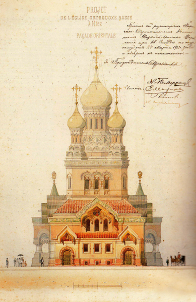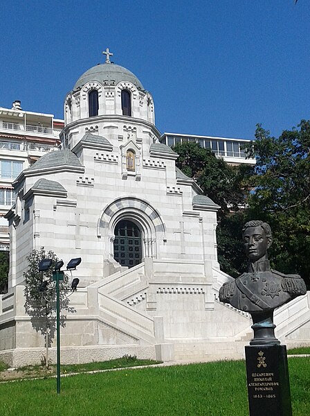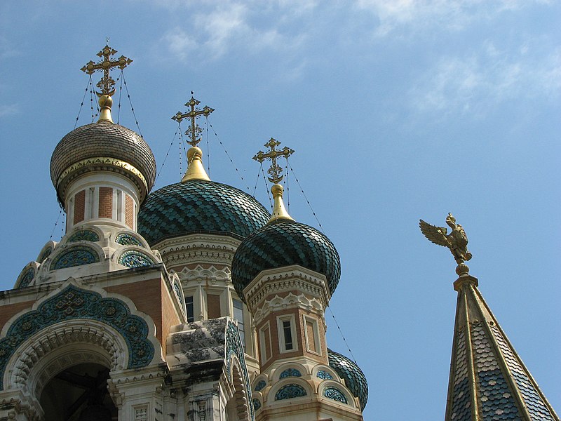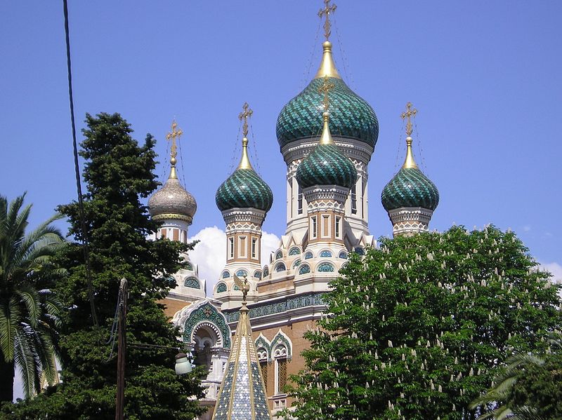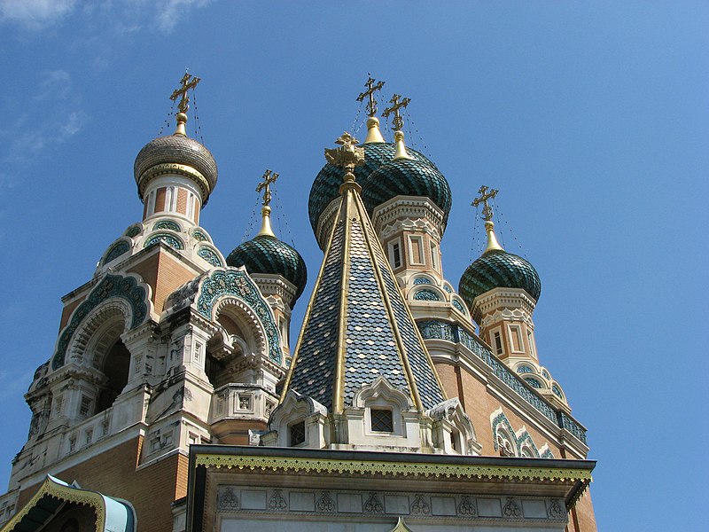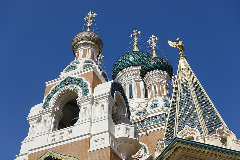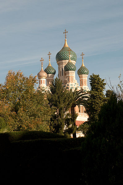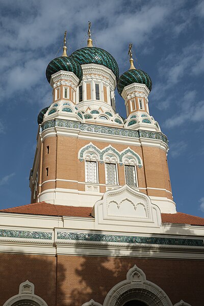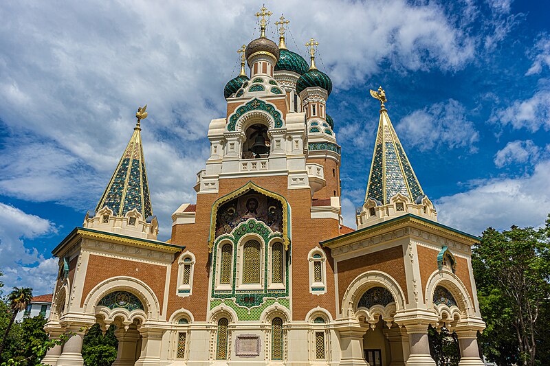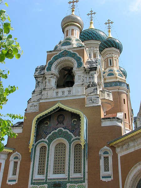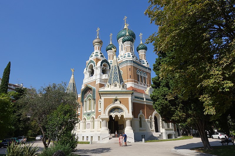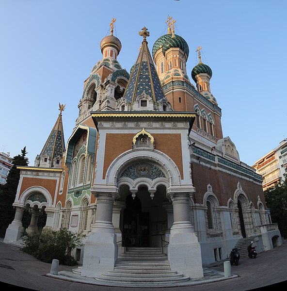 La cathédrale orthodoxe russe Saint‑Nicolas et la chapelle du tsarévitch Nicolas Alexandrovitch se trouvent à Nice, dans les Alpes‑Maritimes. La chapelle commémorative, élevée en mémoire du tsarévitch mort en 1865, a été construite en style byzantin de 1867 à 1868 selon les plans de David Grimm. La présence d'une importante colonie russe à Nice dans la seconde moitié du XIXe siècle a motivé, en 1856, une souscription lancée par la tsarine Alexandra Fedorovna pour édifier l'église Saint‑Nicolas‑et‑Sainte‑Alexandra, inaugurée rue Longchamp puis rapidement devenue insuffisante. Pour répondre aux besoins de la communauté, la construction de la cathédrale Saint‑Nicolas a commencé en 1903. L'architecte Mikhaïl Préobrajenski, professeur à l'Académie impériale des Beaux‑Arts de Saint‑Pétersbourg, s'y est inspiré des églises à cinq coupoles de la fin du XVIe siècle de la région de Moscou. La réalisation a été rendue possible grâce à l'appui du tsar Nicolas II, qui autorisa l'édification dans le parc de la villa Bermond, alors propriété impériale. La cathédrale, consacrée le 18 décembre 1912, présente des coupoles en béton armé; son iconostase et plusieurs icônes sont l'œuvre du peintre Léonide Pianovsky. Située au centre de la ville, près du boulevard du Tzaréwitch et à l'extrémité de l'avenue Nicolas II, elle figure parmi les plus importants édifices orthodoxes russes hors de Russie. L'édifice a été classé au titre des monuments historiques le 11 août 1987 et a reçu le label « Patrimoine du XXe siècle ». Architectoniquement, la cathédrale est conçue en croix grecque avec un corps central cubique de 20 mètres de côté, surmonté de cinq coupoles dont la principale atteint 52 mètres de hauteur. Le corps central est entouré de kokochnikis coiffés de tambours percés de fenêtres étroites ornées de majoliques, et les coupoles sont recouvertes de tuiles vernissées aux tons verts. Deux porches jumeaux relient la nef au clocher polygonal, lui‑même surmonté d'une coupole dorée. Les difficultés de fondation dues à la mauvaise qualité du terrain ont conduit à l'emploi du béton armé pour la structure, masqué par une riche polychromie de parements associant briques industrielles ocres de la région rhénane, marbres italiens, calcaire blanc de La Turbie, majoliques bleu‑pastel et tuiles polychromes de Florence et de Blois. L'iconostase en bois doré, recouverte de bronze et de cuivre ciselé, a été importée de Russie; le décor intérieur présente des motifs floraux inspirés de l'Art nouveau et de l'Art déco. Des travaux de restauration des couvertures et des façades ont été réalisés entre 1989 et 1992. De 1923 à 2010 la paroisse et la cathédrale ont été gérées par une association cultuelle qui dépendait, de 1931 à 2011, de l'archevêché des Églises orthodoxes russes en Europe occidentale relevant du Patriarcat œcuménique de Constantinople; depuis lors la cathédrale est rattachée au diocèse orthodoxe russe de Chersonèse du Patriarcat de Moscou. À partir de novembre 2006 la Fédération de Russie a revendiqué la propriété de la cathédrale en s'appuyant sur l'antériorité de la propriété impériale du terrain avant la révolution de 1917. Après une décision de première instance favorable à la Fédération de Russie en janvier 2010, la cour d'appel d'Aix‑en‑Provence a confirmé en mai 2011 que l'État russe pouvait reprendre possession du bien à l'issue du bail emphytéotique de 1909. Ces procédures ont entraîné des tensions entre l'association gestionnaire et les autorités russes, une fermeture provisoire au public en septembre 2011, une ordonnance de remise des clés en octobre 2011 et la remise effective des clés à un nouveau recteur nommé par le patriarcat de Moscou en décembre 2011; la Cour de cassation a rejeté le pourvoi de l'association en avril 2013. Les offices n'ont pas été interrompus; la cathédrale a rouvert au public le 1er juillet 2012 avec entrée gratuite, et l'État russe a financé une rénovation intérieure et extérieure à l'occasion du centenaire; l'édifice a été officiellement rouverte après les travaux en janvier 2016.