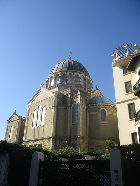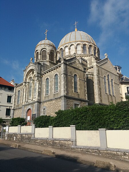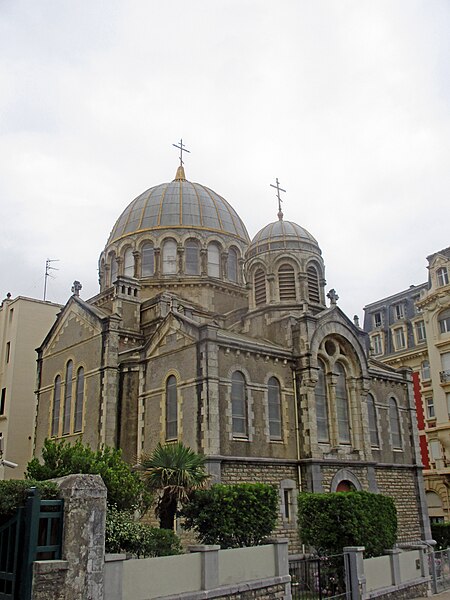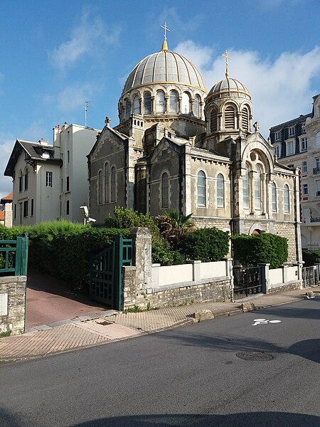 L'église orthodoxe russe de Biarritz, située au 8 avenue de l'Impératrice dans les Pyrénées-Atlantiques, est dédiée à saint Alexandre de la Néva et à la Protection de la Mère de Dieu. Son implantation résulte de l'essor de Biarritz comme station fréquentée par la haute société russe au cours du XIXe siècle, qui rendit nécessaire la construction d'un lieu de culte. La décision de bâtir remonte à 1879 ; jusque-là, les offices se tenaient dans un salon de la villa Eugénie, où assistaient notamment des membres de la famille impériale russe, dont l'impératrice Maria Feodorovna. Un comité constitué en 1889 confia le projet à l'architecte pétersbourgeois Nikolaï Nikititch Nikonov, en collaboration avec l'architecte gersois Oscar Tisnès ; la première pierre fut bénite le 1er (13) octobre 1890 et l'église fut consacrée le 13 (25) septembre 1892 en présence de l'ambassadeur de Russie en France, le baron de Mohrenheim, et du duc de Leuchtenberg ; elle fut d'abord desservie par le clergé de l'église russe de Pau. L'édifice, classé au titre des monuments historiques le 13 mai 2016, présente un plan centré et adopte le style « romano-byzantin » prisé à la fin du XIXe siècle. Si les façades se distinguent par une certaine sobriété, la composition des toitures et la coupole centrale confèrent à l'ensemble une grande profondeur volumétrique. L'intérieur mêle éléments liturgiques orthodoxes et savoir-faire locaux, comme en témoignent les vitraux géométriques de Mauméjean. Sur le plan ecclésiastique, l'église a longtemps été rattachée à l'archevêché des Églises orthodoxes russes en Europe occidentale, créé au début des années 1920 et placé sous l'obédience du patriarcat de Constantinople en 1931, obédience exercée par la Métropole orthodoxe grecque de France depuis 1971. En décembre 2004, lorsque le prêtre desservant souhaita placer la paroisse sous la juridiction du patriarcat de Moscou, la communauté et le diocèse firent appel aux tribunaux, qui confirmèrent l'appartenance à l'archevêché (décision du TGI de Bayonne du 12 décembre 2005, confirmée par la cour d'appel de Pau le 12 février 2006). Plus récemment, alors que l'évêque Jean (Renneteau) rejoignit le patriarcat de Moscou et que certaines paroisses suivirent, la paroisse de Biarritz refusa ce mouvement par vote et rejoignit le Vicariat Sainte-Marie-de-Paris-et-Saint-Alexis-d’Ugine au sein de la Métropole orthodoxe grecque de France, demeurant ainsi fidèle au patriarche de Constantinople.