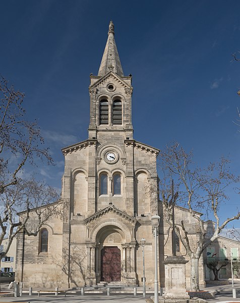 L'église paroissiale Saint-Genest de Manduel (Gard) remplace un édifice encore visible sur le cadastre de 1809 et a été reconstruite sur ses fondations à partir de 1859 sous la direction d'Henri Révoil, architecte en chef des monuments historiques. Inscrite au titre des monuments historiques depuis 2016, elle présente un parti néo-romane. L'édifice comprend une nef centrale flanquée de deux bas-côtés, cinq travées, un transept saillant et des absides semi-circulaires. Le portail reprend, de façon très simplifiée, le motif de celui de Saint-Trophime d'Arles. L'intérieur conserve des peintures décoratives attribuées à Bernard Gentilini, d'après celles du Dominicain de Saint-Andrea-della-Valle à Rome, à l'exception des colonnes de la nef. Le chœur est plus richement orné : caissons et une voûte en cul-de-four peinte en bleu avec ogives feintes pour s'harmoniser avec la nef. La croisée du transept est historiée par la représentation des quatre évangélistes. Un questionnaire administratif de 1837 documente l'état de l'ancienne église, jugée insuffisante et affectée de désordres structurels, alors que la population augmente après l'ouverture de la ligne de chemin de fer. Le conseil municipal délibère l'agrandissement le 11 mai 1856 ; plusieurs projets sont étudiés et l'option retenue est une reconstruction ex nihilo avec réorientation de l'édifice pour ouvrir sur le nouveau cours Jean Jaurès. Henri Révoil établit un devis en 1857, puis la commune obtient par décret impérial l'autorisation d'emprunter pour financer les travaux. L'adjudication à l'entreprise Guérin et Fabre a lieu le 26 juin 1859 et la première pierre est posée le 3 novembre ; un devis supplémentaire est prévu pour un beffroi au clocher. Le gros-œuvre semble réceptionné en octobre 1861 et l'église est consacrée par Mgr Plantier le 10 avril 1862. Des désaccords financiers entre l'architecte et les entrepreneurs entraînent une enquête préfectorale en 1862 ; les parties conviennent d'un montant des travaux et un recours au Conseil d'État aboutit à un supplément versé au printemps 1866. Le coût total ajusté des travaux figure dans les documents communaux entre 95 644,81 et 103 561,87 francs selon les états, hors décoration et mobilier. Parmi les interventions postérieures, on relève des travaux d'étanchéité par Charles Etienne en 1866 (1 000 francs), la reprise du dallage de la sacristie par François Mazoyer en 1889 (500 francs), la pose d'une mosaïque dans l'abside en 1891, des réparations menées par l'agent voyer cantonal A. Bourguet (3 743,76 francs) et la réfection de la toiture en 1920 par l'architecte Poitevin pour 15 625 francs, avec Paul Gache, Dayon et Jules Letourneau pour la maçonnerie, la zinguerie et la charpente. Les verrières d'origine, réalisées par Frédéric Martin d'Avignon en 1862 pour 5 300 francs, comprenaient neuf baies historiées aujourd'hui disparues ; les vitraux soufflés pendant la Seconde Guerre mondiale ont été remplacés en 1950. En 1998, Frédéric Fayard restaure la baie jumelée de la façade et certaines verrières du chœur pour 23 242,63 francs. Un important projet de restauration soutenu par la Fondation du patrimoine et par des partenaires publics (Union européenne via l'initiative Leader, la DRAC, la région Occitanie, le conseil départemental du Gard, la commune et Nîmes Métropole) a porté d'abord sur la protection du gros-œuvre, puis sur la rénovation intérieure, la restauration des vitraux et la conservation des décors peints. Pour les peintures, l'opération a visé à consolider les supports avant la restitution des motifs ; pour les vitraux, la dépose intégrale a permis de reconstituer les pièces manquantes et de protéger chaque baie par une grille de laiton selon des techniques traditionnelles. Les travaux, commencés en janvier 2022, se sont achevés par l'inauguration de l'église restaurée par Mgr Nicolas Brouwet le 1er octobre 2023.