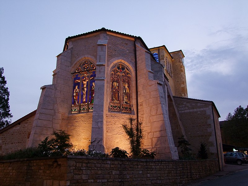 L'église, située dans le Rhône en France, a été reconstruite au XVe siècle et présente deux chœurs accolés. L'un d'entre eux recèle des fresques murales du XVIe siècle. On y pénètre par une porte principale ornée d'un décor Renaissance. Le bénitier sur pied porte la date de 1556. Les boiseries sont agrémentées de têtes sculptées très expressives. Des statuettes de pierre représentent des travailleurs du village : un forgeron, un homme avec son chien, un bûcheron et un vigneron taillant la vigne. L'église relève de la paroisse Saint Cyprien de Buisante.