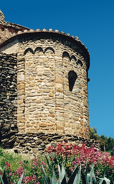 L’église Notre-Dame des Escaliers, aussi appelée Sainte-Marie-des-Grades (Església de Santa Maria de les Grades), est un édifice roman du hameau de Marcevol, situé à 200 mètres du prieuré et à environ un kilomètre à l’est du village d’Arboussols, dans la région naturelle du Conflent (Pyrénées-Orientales, Occitanie). Une bulle pontificale de 1011 mentionne l’alleu de Marcevol parmi les possessions de l’abbé de Cuxa, et l’église apparaît de nouveau dans les sources en 1088 ; elle fait l’objet d’une inscription au titre des monuments historiques depuis le 30 juillet 1973. La construction de l’église remonterait à la fin du XIe siècle, avec des compléments relevant des XIe et XIIe siècles ; la petite ceinture fortifiée qui défend l’entrée, munie de courtes archères, pourrait dater de la fin du XIIe ou du XIIIe siècle et est plus récente que l’édifice primitif. L’édifice, de faible dimensions, présente une nef unique courte, une travée de chœur plus étroite mais plus haute, et une abside semi‑circulaire séparée du chœur par un mur‑diaphragme. L’accès principal s’effectue par l’est après une série de degrés circulaires ; la façade méridionale, dominée par un petit clocheton à une baie campanaire, comporte également une porte desservie par un escalier et un mur en moellons grossiers. Cinq pierres encastrées dans le mur sud du chœur permettent l’accès au clocheton latéral, implanté sur le mur sud de la nef. Les parements sont constitués de galets ou de pierres plates disposées en épi, avec des chaînes d’angle en granit ; la partie supérieure des murs, d’époque plus récente, est bâtie en blocs de granit équarris sommairement appareillés et a été surélevée et ornée de pinacles aux quatre angles et au faîte. La couverture primitive a disparu et a été remplacée par deux versants à tuiles rondes. Le chevet, de belle facture roman lombard, repose sur un puissant soubassement : l’abside unique est décorée de bandes lombardes composées de lésènes et d’arcades groupées par trois, réparties en cinq panneaux décoratifs, chacun orné de trois petits arcs. L’abside est ouverte par une fenêtre à simple ébrasement surmontée d’un arc en plein cintre réalisé en moellons posés sur champ. Les façades septentrionale et occidentale de la nef sont aveugles, ce qui accentue le caractère compact et défensif de l’ensemble. Une légende locale attribue à la mère de saint Lin le recours à l’église et rapporte le miracle d’un sac de farine demeuré sec malgré une forte pluie ; ce fait aurait donné lieu à l’institution d’un pardon qui attirait autrefois une foule importante.