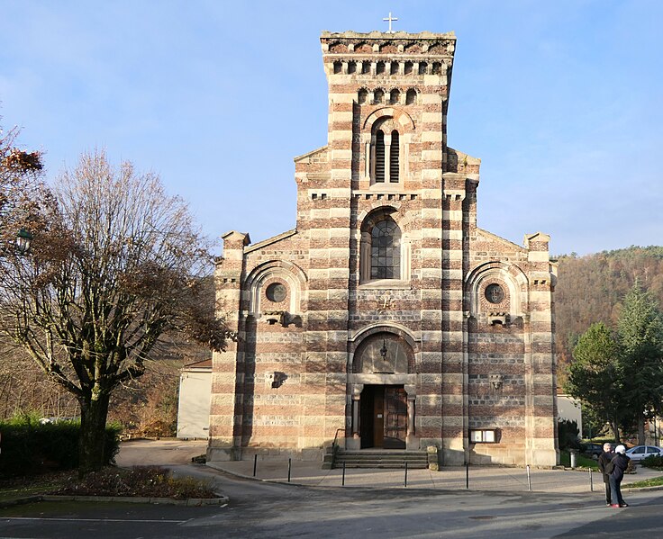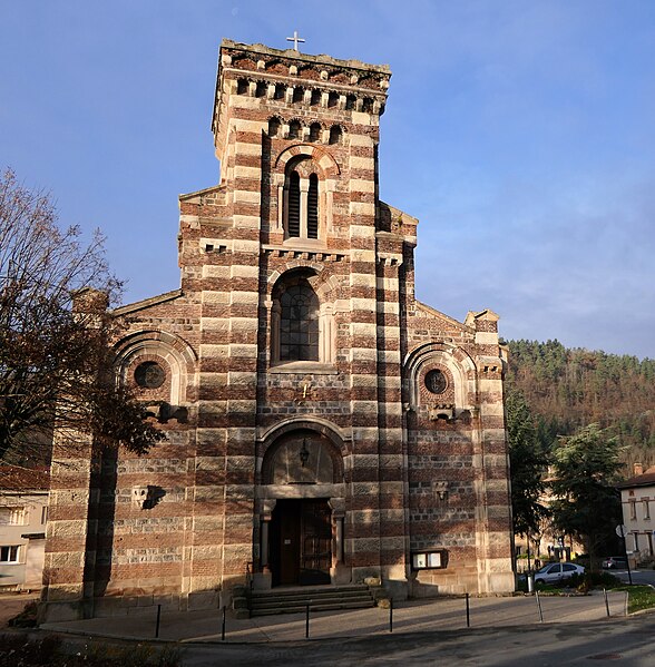 L'église paroissiale Notre‑Dame de Pont‑Salomon (Haute‑Loire, Auvergne‑Rhône‑Alpes) est une construction néo‑romane conçue par l'architecte Auguste Leroux et édifiée entre 1867 et 1870. Elle fut élevée alors que le village était jusque‑là partagé entre trois paroisses ; la paroisse de Pont‑Salomon n'a été officiellement créée qu'en 1872, après la construction d'un presbytère. Selon la tradition, le projet et son financement ont été pris en charge par souscriptions de la Société Dorlan‑Holtzer, Jackson & Cie ; l'édifice, installé sur des terrains appartenant à l'usine, aurait été propriété de celle‑ci pendant environ un an avant d'être offert, avec la cure, à la commune. Le plan présente un chevet polygonal et une nef bordée de deux bas‑côtés. Le clocher, de plan carré, évoque l'architecture défensive médiévale par la présence de faux mâchicoulis. L'intérieur se distingue par un décor sculpté riche, comprenant chapiteaux, tribune et autels, ainsi qu'un ensemble de vitraux. L'église est inscrite au titre des monuments historiques par arrêté du 19 mai 2003.