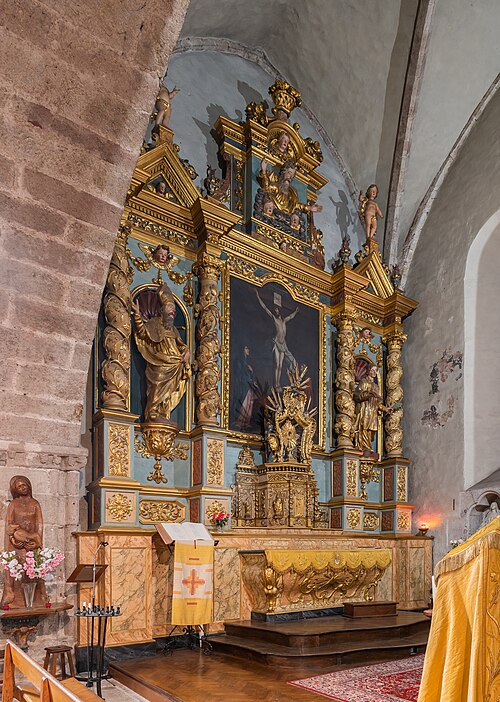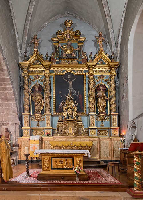 L'église paroissiale Saint-Étienne et Saint-Blaise comprend deux nefs accolées, chacune pourvue d'un chevet plat. Elle est le fruit de plusieurs campagnes de travaux intervenues à la fin du XIIe siècle, dans la seconde moitié du XIIIe siècle, aux XIVe et XIXe siècles, puis encore au XXe siècle. À partir du XIVe siècle, un dispositif défensif composé d'un clocher-tour et d'un parapet protégeant un chemin de ronde a été construit. L'édifice conserve des éléments de qualité, notamment une châsse en bois doré de Sainte-Tarcisse.