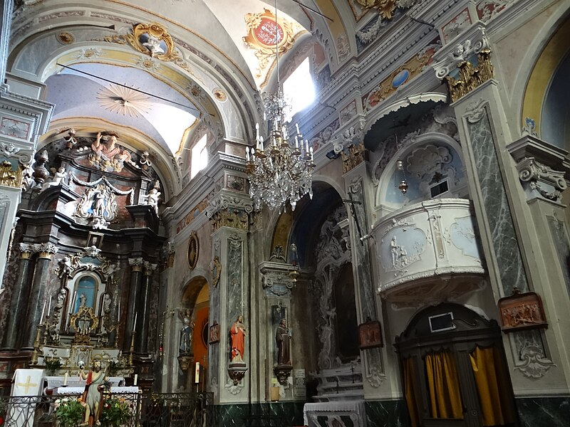 L'église paroissiale Saint-Jean-Baptiste se situe à Coaraze, dans les Alpes-Maritimes. Elle a été édifiée au XIIe siècle sous le vocable de Saint-Pierre, puis reconstruite au XIVe siècle et consacrée à saint Jean-Baptiste. Une mention de 1282 évoque une église Saint-Pierre, probablement sur l'actuelle place du château, et la construction à l'emplacement actuel serait antérieure à 1348, peut-être liée à l'agrandissement du château. Divers tremblements de terre ont contraint à plusieurs réparations et reconstructions partielles, dont un séisme important en 1348 et un autre en janvier 1618 ; une inscription indique que la communauté acheva l'édifice en 1717 « trois fois tombé et trois fois restauré ». On relève des dates gravées sur l'édifice : 1452 sur une pierre des fondements extérieurs du maître-autel et 1527 sur le linteau de la porte. Construite à l'extrémité d'un éperon et à flanc de falaise, l'église a fait l'objet de campagnes de restauration aux XIXe et XXe siècles, notamment pour résoudre des problèmes de stabilité. Au troisième quart du XVIIIe siècle, une importante campagne décorative a transformé cet édifice rustique de montagne en une église de style rocaille inspirée du baroque tardif niçois. Le décor comprend des autels et retables en gypserie dans le chœur et les chapelles latérales, proches par leur composition et leur facture de réalisations contemporaines dans quelques églises des villages perchés de l'arrière-pays niçois. En 1863, les restaurations s'accompagnèrent de l'exécution d'un décor peint néo-baroque sur les parties hautes et la voûte de la nef. L'intérieur présente un décor baroque en stuc et des trompe-l'œil de la période de la Contre-Réforme, avec une profusion d'anges et d'angelots — cent dix-huit figurines ont été répertoriées. On y conserve une Vierge à l'Enfant en albâtre datée de 1600. La partie basse de la façade, sous les fenêtres, apparaît bien appareillée et plus ancienne que la zone située au-dessus des fenêtres, datée de 1717. L'édifice est inscrit dans son ensemble au titre des monuments historiques depuis 2018. Sont notamment remarquables la nef, le maître-autel avec son retable, la chaire, les chapelles latérales et le décor de la voûte.