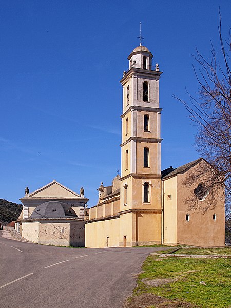 L'église paroissiale Saint-Pierre-Saint-Paul, d'origine XVIIe siècle, occupe un promontoire sur la place du village. Elle a été agrandie au XVIIIe siècle selon les plans de Frediani (Angelo Frediani de Penta di Casinca) et ses décors intérieurs furent achevés en 1770 ; sur la voûte figure l'inscription « AD 1770 TU ES PETRUS ET SUPER HANS PETRAM AEDIFICABO ECCLESIAM AM ». Initialement dédiée à saint Pierre, elle prit aussi le vocable de saint Paul en 1659. La façade, composée de deux étages séparés par des corniches à pinacles et surmontée d'un fronton semi‑circulaire, porte la tiare papale et les clés de saint Pierre ; au‑dessus de la porte centrale une niche destinée à une statue de saint complète l’ordonnance. L'édifice, de plan allongé (32 m sur 16 m), comprend trois nefs desservies par des piliers ou pilastres et s'ouvre sur huit chapelles latérales ; le transept est séparé de la nef principale par une balustrade en marbre. Sur la nef de droite subsistent des fragments d'anciennes fresques aujourd'hui recouverts de stucs ; le transept abrite la chapelle du Rosaire à droite et celle du Sacré‑Cœur à gauche. Le clocher primitif, une tour‑clocher à quatre étages, s'est en grande partie effondré le 3 mars 1918 ; un nouveau clocher accolé à l'église fut construit au début du XXe siècle, les trois cloches fondues à Campile ayant été bénites en 1931 sous les noms de Sainte‑Marie (530 kg), Saint‑Pierre (260 kg) et Saint‑Paul (190 kg). Le clocher fut surélevé d’un étage en 1954 — la cloche Sainte‑Marie, fêlée, fut alors remplacée — et la coupole a été refaite en 1992 pour s’harmoniser avec l’architecture baroque de la façade ; il est muni d’une horloge et le site de l’ancienne tour sert de monument aux morts. L'église conserve plusieurs œuvres remarquables : La Vierge aux raisins offerte par l'empereur Napoléon III, le tableau du maître‑autel Le Christ en croix adoré par des apôtres (XVIe siècle) et d'autres toiles — Saint Nicolas (selon la tradition provenant de l'ancienne église Saint‑Nicolas), Saint Jean‑Baptiste enfant (don du musée Fesch d'Ajaccio), Le Christ en dérision, La Sainte Famille, La mort de saint Bruno (offerte par l'État), Sainte Madeleine, La lapidation de saint Étienne et un autre Christ en croix. L'édifice est classé au titre des Monuments historiques.