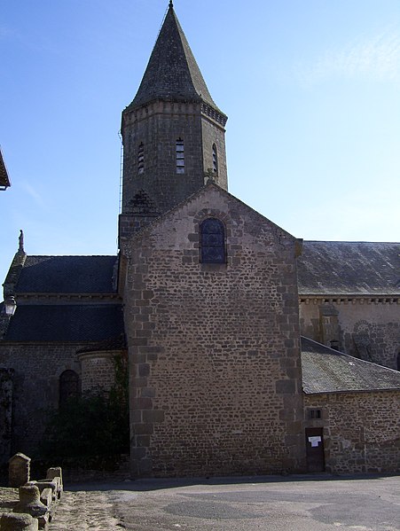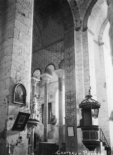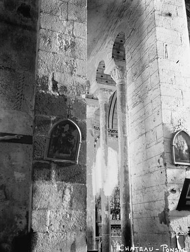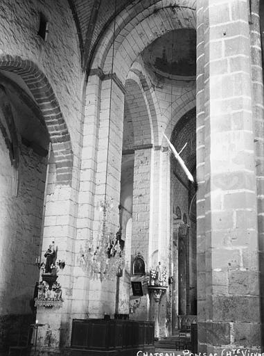 L'église Saint-Thyrse est l'église paroissiale de Châteauponsac, dans le département de la Haute-Vienne. Les premières pierres datent de 1041. Lors des guerres de la domination anglaise au XIVe siècle, la voûte de la nef et la façade occidentale furent renversées. Les réparations du XVe siècle modifièrent l'édifice : les baies des murs romans conservés de la nef furent obturées, des contreforts furent supprimés et de nouvelles fenêtres percées ; la nef et les collatéraux reçurent une voûte à nervures prismatiques s'appuyant sur des colonnes dépourvues de chapiteaux, et une façade occidentale ornée d'ogives fleuries fut élevée. L'édifice est classé au titre des monuments historiques depuis le 9 avril 1910. La voûte de la nef, menacée d'un effondrement partiel, a motivé d'importants travaux de rénovation après lesquels l'église a rouvert. D'un point de vue architectural, Saint-Thyrse est un bâtiment roman des XIe et XIIe siècles au plan cruciforme, doté de deux collatéraux étroits et de trois absides circulaires à l'ouest. L'intersection du transept et de la nef est surmontée d'une coupole couronnée d'un clocher, et la flèche a été reconstruite et agrandie en 1870. Le chœur se distingue par deux rangées de colonnes aux fûts cylindriques légers séparant les collatéraux, et sous la chapelle du transept méridional se trouve une crypte voûtée, portée par quatre colonnes dont un seul chapiteau est sculpté. Une étude de Évelyne Proust et Éliane Vergnolle, publiée dans les actes du Congrès archéologique de France (session 172) et rééditée par la Société française d'archéologie en 2016, traite de l'édifice du XIe siècle. Des notices et ressources complémentaires sont disponibles dans les bases et portails spécialisés tels que Clochers de France, Mérimée, et les portails consacrés aux monuments historiques, à la Haute-Vienne et à l'architecture chrétienne.