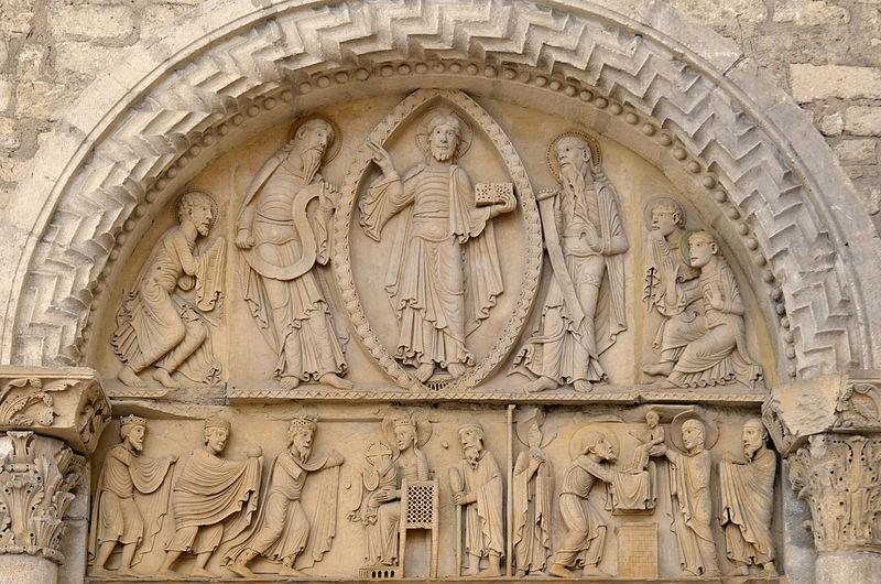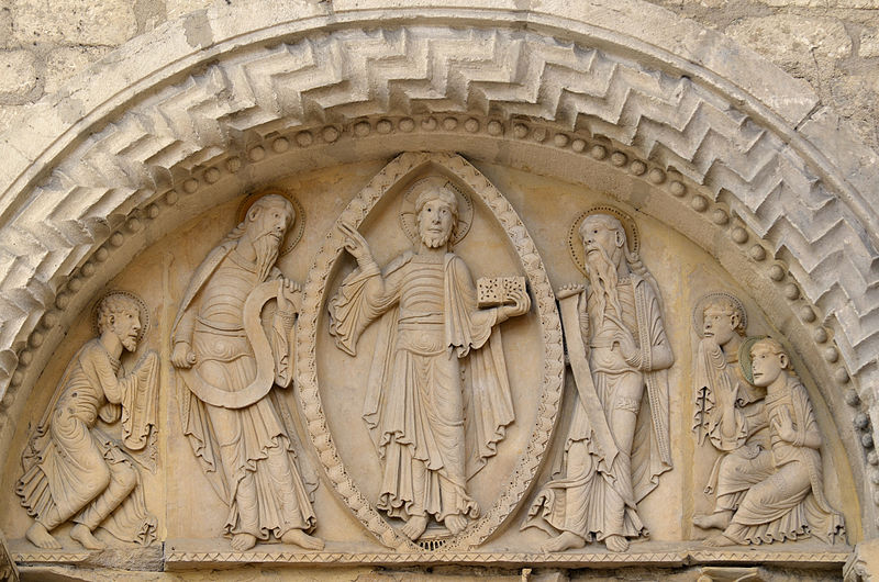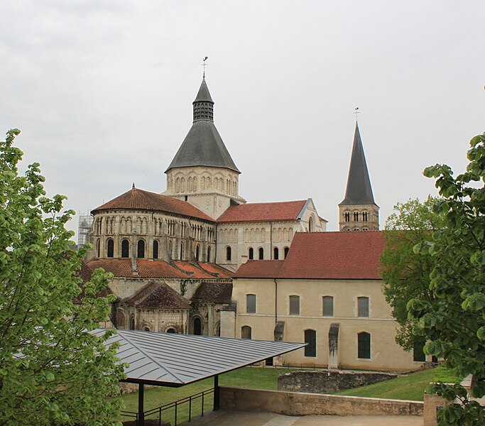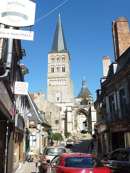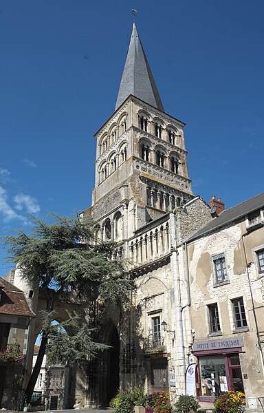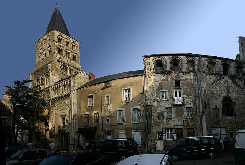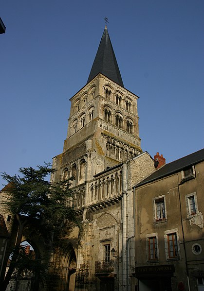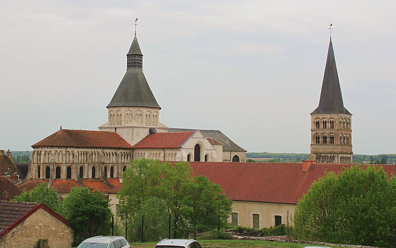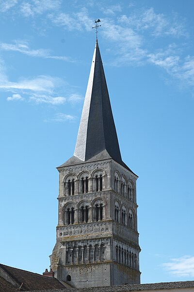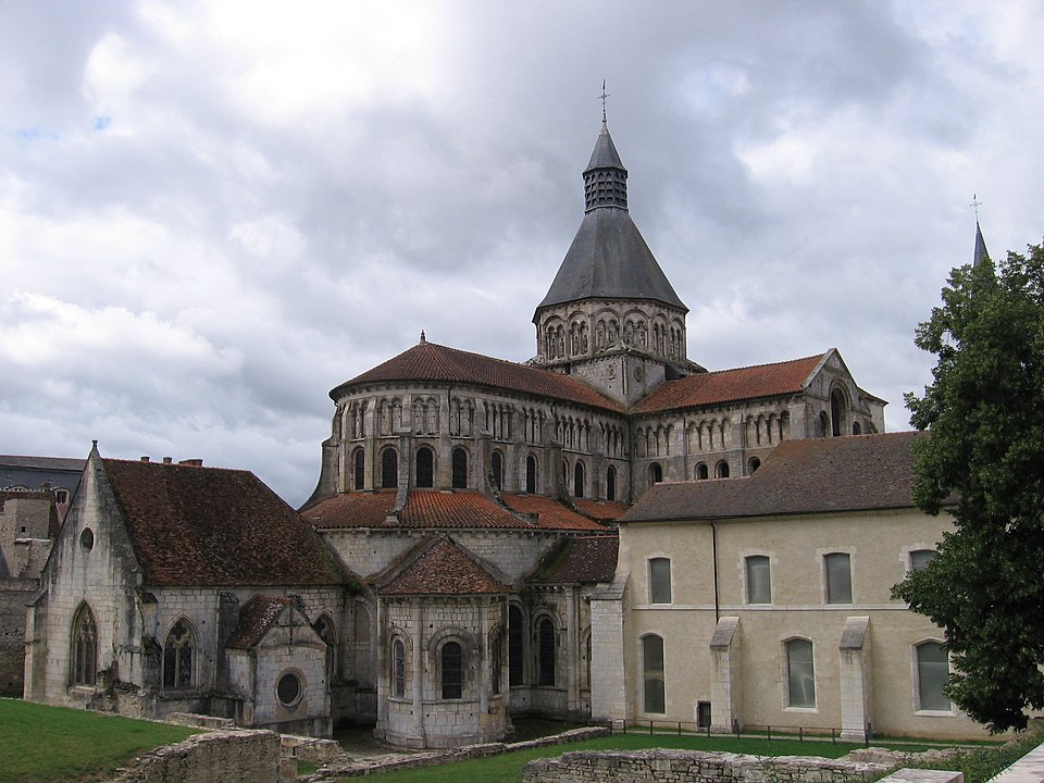 L'église priorale, édifiée au XIIe siècle, se distingue par un chevet à chapelles rayonnantes et une façade occidentale ornée de deux tympans remarquables. Le tympan occidental, daté du début du XIIe siècle, illustre l'Assomption de la Vierge et des scènes liées à l'enfance du Christ, reflet de la forte dévotion mariale de l'ordre clunisien. Le tympan du transept sud, provenant de la façade occidentale et daté de 1132, représente la Transfiguration du Christ, organisée en registres comprenant l'Adoration des Mages et la Présentation au Temple. La nef s'est effondrée au XVIIe siècle ; des vestiges du collatéral nord ont été intégrés à des propriétés privées et inscrits au titre des monuments historiques en 1927.