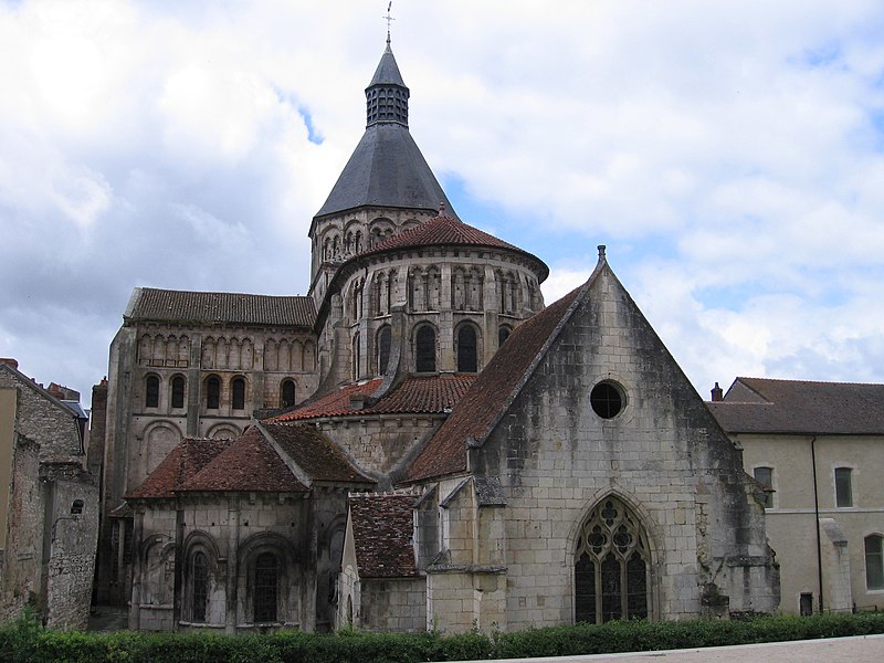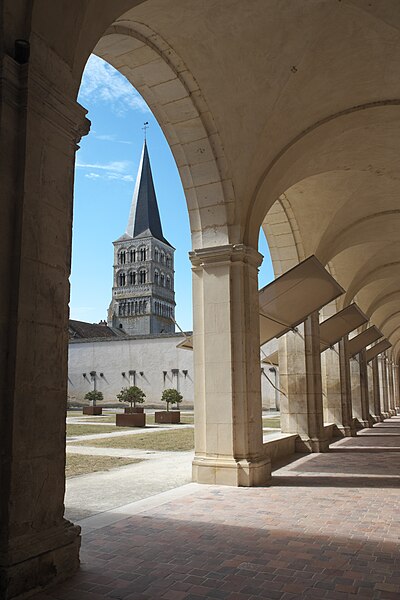 L'intérieur impressionne par un transept de grandes dimensions, des colonnes élevées reposant sur des arcs brisés et un chœur composé de trois travées voûtées en berceau brisé. L'abside présente un faux triforium et s'ouvre sur un déambulatoire flanqué de chapelles rayonnantes dont les chapiteaux du chœur portent principalement des motifs animaliers. Les stalles furent installées lors d'une campagne de restauration conduite sous le prieur Jean de La Magdeleine de Ragny, et des travaux complémentaires furent menés sous le prieur Jacques-Nicolas Colbert.