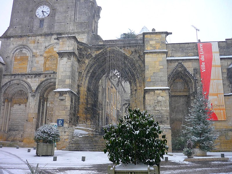Selon la tradition, un monastère dédié à la Vierge aurait été implanté au bord de la Loire puis détruit par les Barbares. Au milieu du XIe siècle, l'évêque d'Auxerre et le comte de Nevers confièrent à Hugues, abbé de Cluny, la fondation d'un prieuré à La Charité, premier prieuré de l'abbaye de Cluny dans la région. Consacré au début du XIIe siècle, ce prieuré devint une étape importante sur la route de Compostelle et favorisa le développement et la fortification de la ville autour du monastère. Les principales campagnes de construction mentionnées concernent la fin du XVe siècle pour le logis du prieur et la porterie, puis des aménagements de style classique aux XVIIe et XVIIIe siècles. Le prieuré connut un long déclin à partir du XVIe siècle, accentué par le régime de la commende et les guerres de Religion ; un incendie du 31 juillet 1559 détruisit une grande partie de l'église priorale et des bâtiments conventuels. L'activité monastique cessa à la Révolution ; le domaine fut saisi, morcelé et vendu, et l'église devint paroissiale tandis que les bâtiments furent affectés à des usages industriels et commerciaux au XIXe et XXe siècles. Prosper Mérimée intervint en 1840 pour empêcher la destruction d'une partie de l'édifice par le tracé d'une route royale, et l'ensemble a été classé monument historique dès la liste de 1840 puis inscrit en 1998 sur la liste du patrimoine mondial de l'UNESCO au titre des chemins de Saint-Jacques-de-Compostelle. Depuis 2001, le prieuré fait l'objet d'un vaste chantier de restauration en Bourgogne.