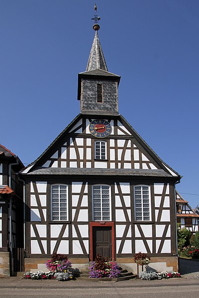 L'église protestante de Kuhlendorf, située 19 rue du Village à Kuhlendorf, commune de Betschdorf (Bas-Rhin), est un lieu de culte luthérien construit en 1820. Unique en Alsace, cet édifice est la seule église réalisée entièrement en pan de bois. Inscrite à l'inventaire des monuments historiques le 24 janvier 1978, elle a été conçue comme un bâtiment mixte abritant à la fois le temple et une école, le Bet-und Schulhauss. La salle de classe et le logement de l'instituteur occupaient l'arrière du bâtiment ; le logement se trouvait au premier étage. L'édifice, probablement en pan de bois pour des raisons d'économie — la pierre taillée étant trop coûteuse pour une petite communauté et le bois abondant grâce à la forêt de Haguenau — ne se distingue extérieurement des maisons à colombage voisines que par la présence d'un clocheton et de hautes fenêtres. Le mécanisme de l'horloge comporte une seule aiguille indiquant les heures. À l'origine, l'accès au temple se faisait par la porte donnant sur la rue et l'école par une porte latérale ; depuis la rénovation de 1987, on pénètre dans l'église par l'ancienne salle de classe latérale et l'orientation a été modifiée. Malgré ce changement d'orientation, le mobilier est d'origine ; les vitraux sont récents et l'orgue date de 1977. Le village de Kuhlendorf, cité dès 792, n'a jamais constitué une paroisse autonome et dépendait des paroisses voisines : après la Réforme introduite par le comte Philippe IV en 1545, Kuhlendorf fut une filiale d'Oberbetschdorf, aux côtés de Schwabwiller et Reimerswiller. En 1684, les églises de Niederbetschdorf et d'Oberbetschdorf devinrent simultanées avec la réintroduction du culte catholique à la suite de l'annexion de l'Alsace par Louis XIV; la cohabitation des deux cultes prit fin en 1889 avec la construction d'une église catholique à Oberbetschdorf. Depuis 1972, Kuhlendorf fait partie de la commune réunie de Betschdorf.