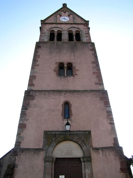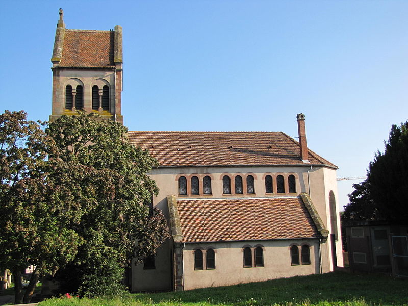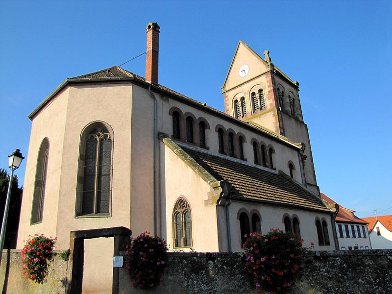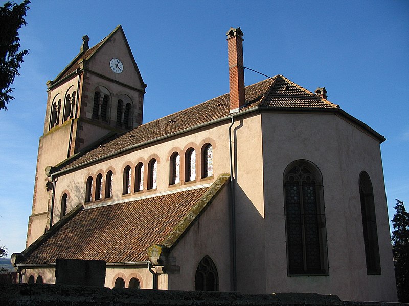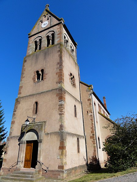 L'église protestante de Scharrachbergheim, située à Scharrachbergheim‑Irmstett dans le Bas‑Rhin, est classée au titre des monuments historiques depuis 1893. Le temple actuel date pour l'essentiel de 1895‑1896 et a été élevé après la promulgation de la fin du simultanéum le 19 avril 1893. La tour‑clocher, ancienne tour‑chœur du XIIe siècle, a été conservée et surélevée d'un niveau, et quelques sculptures monumentales de la même époque subsistent dans l'édifice. Une inscription datée de 1737, visible dans l'angle du collatéral gauche et évoquant une restauration, provient de l'ancien ossuaire qui fut transformé en chapelle à cette date. Les travaux de 1895‑1896 ont remplacé un bâtiment antérieur connu par un plan de Brion et des photographies : à la nef du XIIe siècle avaient été ajoutés un ossuaire au nord — converti en chapelle en 1737 — et une chapelle au sud, tandis que le chœur avait été agrandi à la fin du XVe siècle. La porte d'entrée de l'enclos, aujourd'hui disparue, portait la date de 1468 ; sa pierre a été réemployée dans le mur d'enclos, ainsi qu'un relief du XIIe siècle représentant une tête, peut‑être de lion.