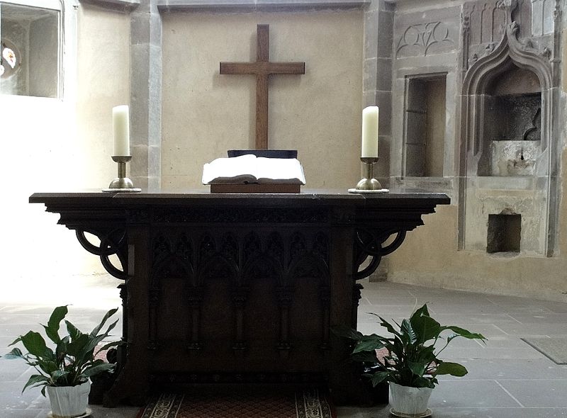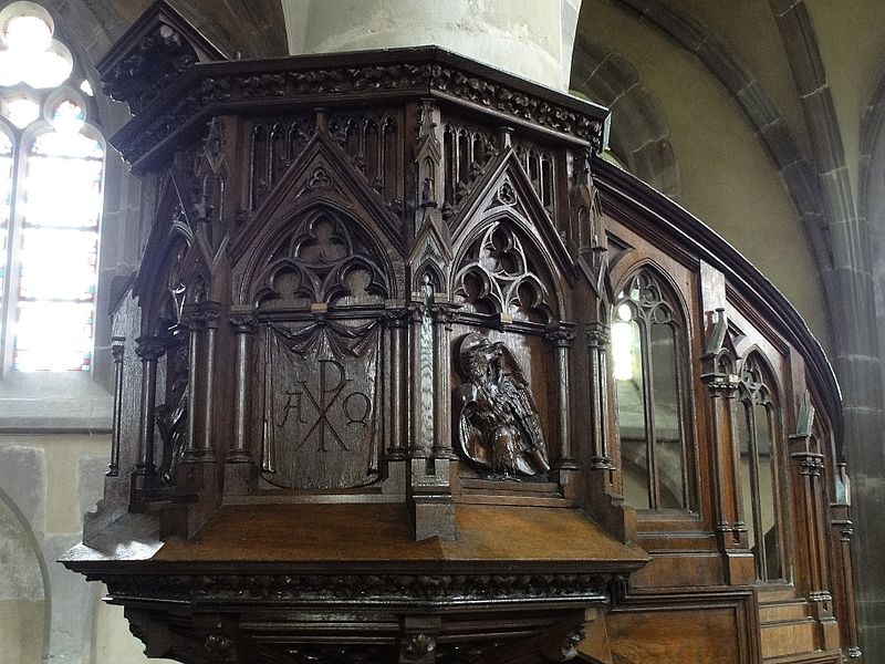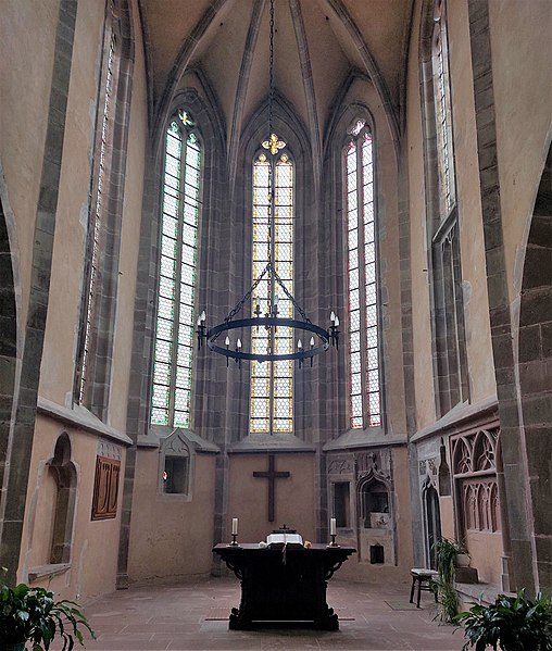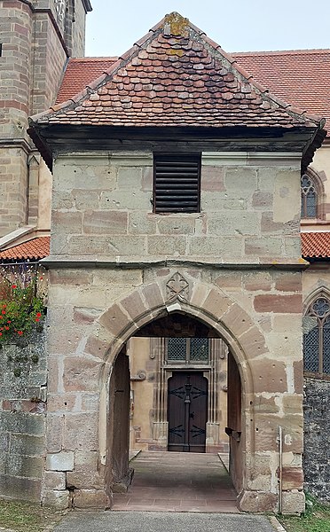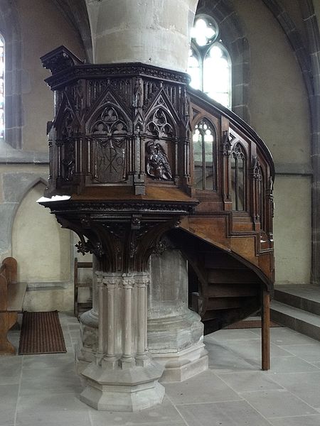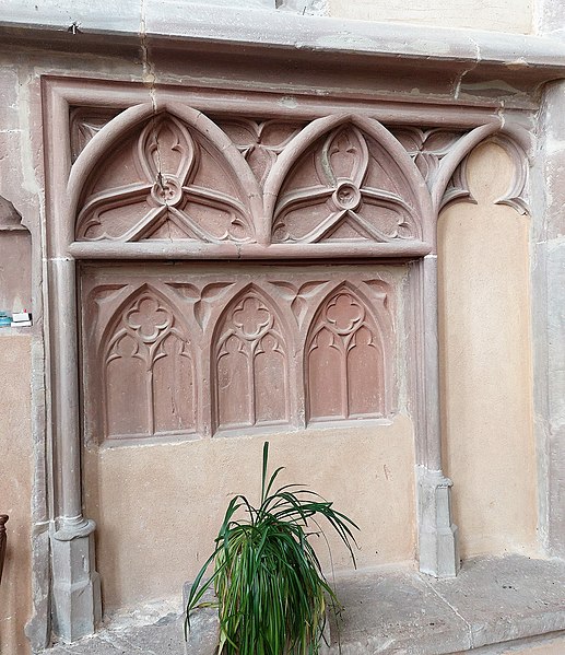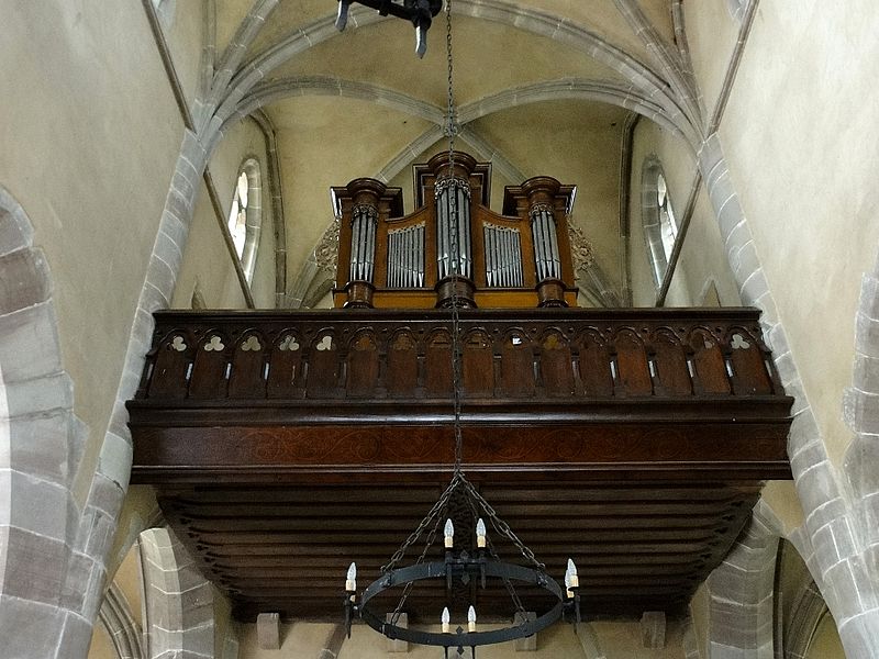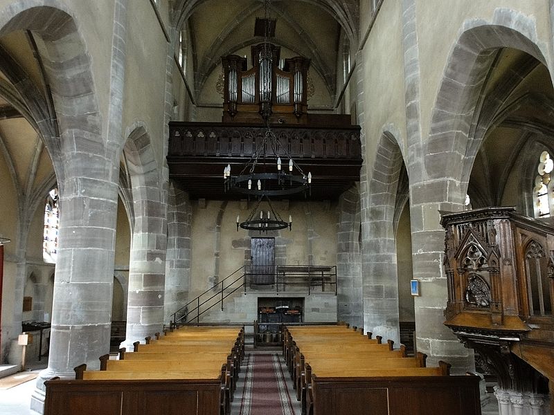 À l'intérieur, la piscine richement ornée rappelle les usages liturgiques anciens, et l'église conserve un exemple rare d'hagioscope en Alsace. La paroisse est membre de l'Union des Églises protestantes d'Alsace et de Lorraine.