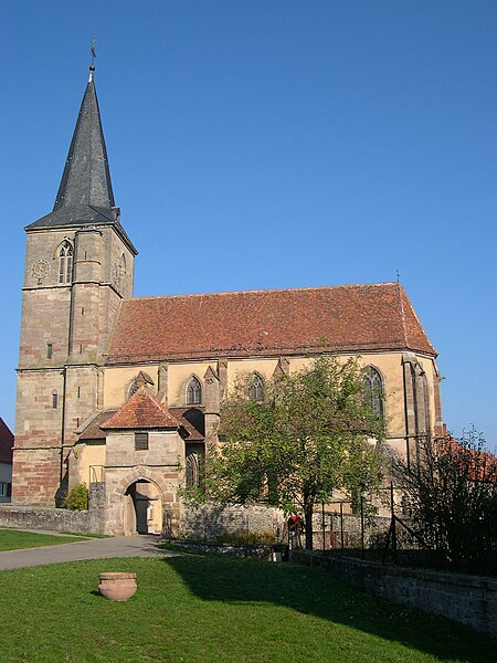 L'église protestante de Domfessel, dans le Bas-Rhin, est une église fortifiée reconnue pour son homogénéité architecturale. Une bulle pontificale de 1309 a autorisé Henri de Sarrewerden à y faire édifier un bâtiment religieux, dont la construction s'est achevée en 1340, après une période de construction autour du milieu du XIVe siècle. À l'origine vouée au culte catholique, elle est devenue lieu de culte protestant lors de l'introduction de la Réforme, bien qu'elle ait retrouvé ponctuellement le statut d'église paroissiale au XVIIe siècle. L'édifice a subi des dommages de guerre avant d'être restauré. Il est protégé comme monument historique depuis sa classification du 28 novembre 1877.