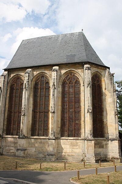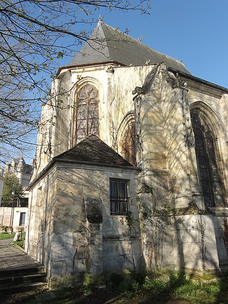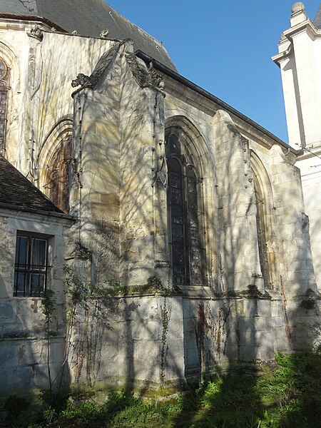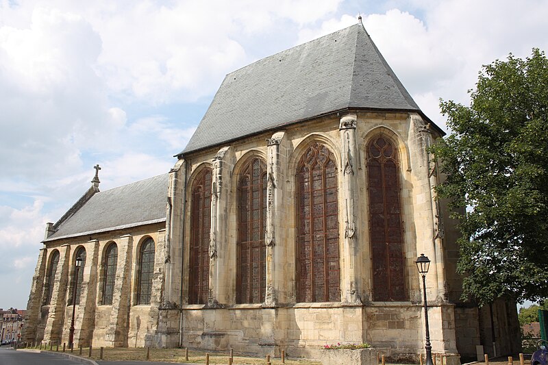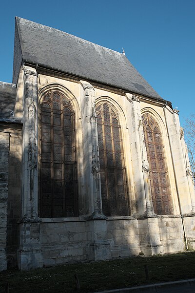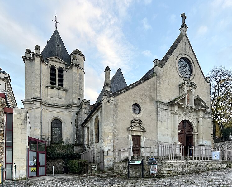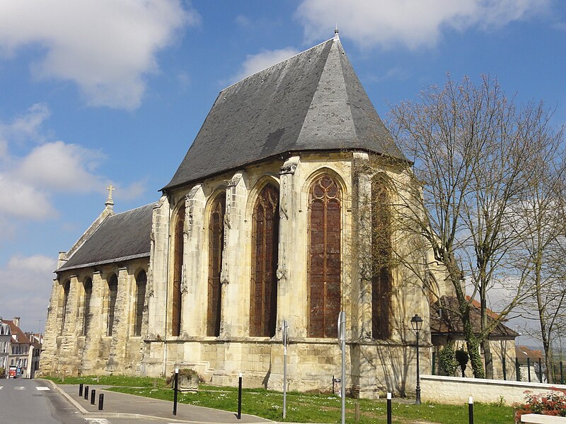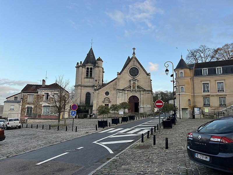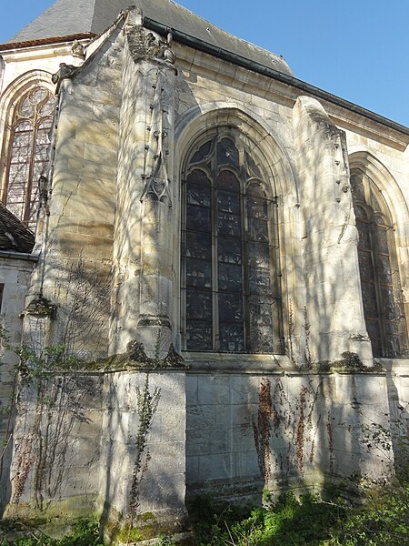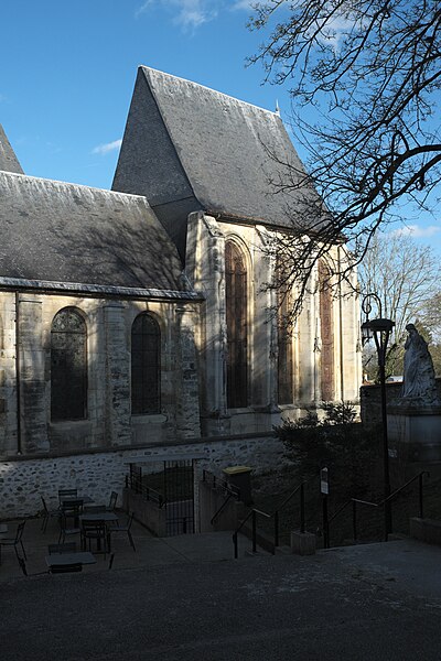 L'église Saint-Acceul, à Écouen dans le Val-d'Oise, est la seule église française placée sous ce vocable et conserve toutefois une clavicule attribuée à saint Andéol, qui semble constituer son véritable patron. Elle se dresse sur la place de l'Église, face à l'hôtel de ville, voisine de l'office de tourisme et juste en contrebas du château d'Écouen ; sa façade principale donne sur la place et le chevet est partiellement visible depuis la rue et depuis la cour d'une école. L'origine du nom demeure incertaine : la statue au-dessus du portail, tenant une scie, et la présence de la relique font penser à saint Andéol, mais des rapprochements locaux avec saint Acheul d'Amiens et des évolutions phonétiques rendent plausible une confusion entre plusieurs traditions saintes, point sur lequel les historiens ne sont pas tous d'accord. Les origines de l'édifice sont mal connues en raison de la disparition d'archives anciennes, mais la seigneurie de Montmorency paraît liée très tôt au site et la paroisse figure dans des donations et contestations médiévales mentionnées par les sources. La reconstruction majeure a été entreprise à l'initiative du connétable Anne de Montmorency au milieu du XVIe siècle ; le chœur et son collatéral, élevés dans un goût gothique flamboyant mêlé d'influences renaissantes, forment un ensemble élancé et soigné, tandis que le clocher resta inachevé et que la nef basse, reprise économiquement au début du XVIIIe siècle, contraste fortement avec le chœur. La principale richesse de l'église réside dans ses vitraux Renaissance du milieu du XVIe siècle qui ornent toutes les fenêtres du chœur et du collatéral et constituent un ensemble exceptionnel, conservé en quasi-intégralité à son emplacement d'origine. Les travaux se sont déroulés en plusieurs campagnes, du parti flamboyant des voûtes à l'incorporation d'éléments de style renaissant, et certaines étapes ont été liées aux chantiers du château d'Écouen ; Jean Bullant est notamment associé à la phase finale et y est enterré. À la fin du XVIIe siècle et au début du XVIIIe, l'arrivée d'une nouvelle relique soutenue par Anne de Bavière provoqua la transformation de la base du clocher en chapelle, la reconstruction économique de la nef et du bas-côté et le renouvellement du mobilier, tandis qu'un porche fut ajouté en 1737, critiqué par des contemporains. Lors de la Révolution, la paroisse fut rattachée au diocèse de Versailles ; plusieurs objets et cloches furent envoyés à la fonte, le mobilier vendu et l'église dédiée au culte de la Raison, mais des paroissiens sauvèrent certaines reliques et, après le concordat de 1801, la vie cultuelle reprit et des reliques furent restituées. Classée au titre des monuments historiques dès la liste de 1840, l'église bénéficia d'opérations de restauration au XIXe siècle : une façade néo-Renaissance simplifiée fut exécutée entre 1851 et 1854, les vitraux firent l'objet d'une restauration en 1854 par Laurent-Charles Maréchal, et des travaux de consolidation et de transformations eurent lieu au cours du siècle. Au XXe siècle, les verrières furent déposées pour protection dans les conflits de 1918 et 1939, endommagées puis restaurées par Jean-Jacques Grüber et réinstallées en 1951 ; des actes de vandalisme et des démontages au cours du siècle ont par ailleurs modifié le mobilier et l'aménagement intérieur. Des campagnes importantes de consolidation et de restauration ont été menées à partir des années 1970, le chœur menaçant ruine en 1979 puis étant consolidé et restauré en deux phases achevées en 1997 ; une restauration complète des élévations extérieures, de la nef, du bas-côté et de la base du clocher a été conduite entre 2004 et 2013, financée en partie par la commune. L'édifice présente un plan irrégulier : une nef de quatre travées avec un seul bas-côté au nord-est, un chœur de trois travées flanqué d'un collatéral nord-est et un clocher-tour implanté devant la façade nord-est ; la disproportion entre le chœur haut et la nef basse, conséquence de moyens limités, nuit à l'harmonie générale et accentue le caractère singulier du clocher inachevé visible depuis la place. À l'intérieur, la nef de 1710 est sobre mais bien éclairée, tandis que le chœur constitue la pièce maîtresse par son tracé flamboyant, ses voûtes à liernes et tiercerons peintes aux couleurs des Montmorency et ses culs-de-lampe sculptés d'angelots et de motifs végétaux. Les grandes arcades s'appuient sur des piliers monocylindriques et les nervures retombent sur des culs-de-lampe, ce qui donne à l'élévation une ordonnance particulière mêlant parti conservateur et décors finement travaillés, tandis que le remplage des fenêtres mêle formes flamboyantes tardives et détails renaissants. Le bas-côté, en grande partie remanié aux XVIIIe et XIXe siècles, abrite la base du clocher dont la voûte du milieu du XVIe siècle subsiste et qui fut percée pour la remontée des cloches ; cette base fut remaniée en 1709 pour accueillir la châsse des reliques. À l'extérieur, la façade néo-Renaissance du milieu du XIXe siècle n'a pas résolu le déséquilibre des élévations occidentales et le clocher, à l'allure massive et ponctué de contreforts obliques, conserve une impression d'inachèvement ; des armoiries sculptées subsistent sur certains pans, bien que partiellement détruites à la Révolution. Les vitraux forment le trésor de l'église : neuf verrières polychromes du XVIe siècle constituent un programme iconographique cohérent centré sur la vie du Christ et de la Vierge, avec des scènes narratives dominantes et des donateurs représentés, et sont attribués par analyse stylistique à un atelier proche de celui qui travailla pour le château d'Écouen ; huit verrières de 1709-1710 en verre blanc peint complètent l'ensemble et portent les