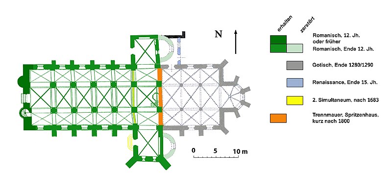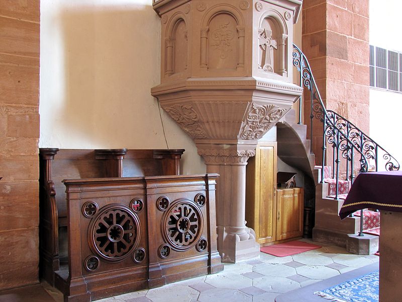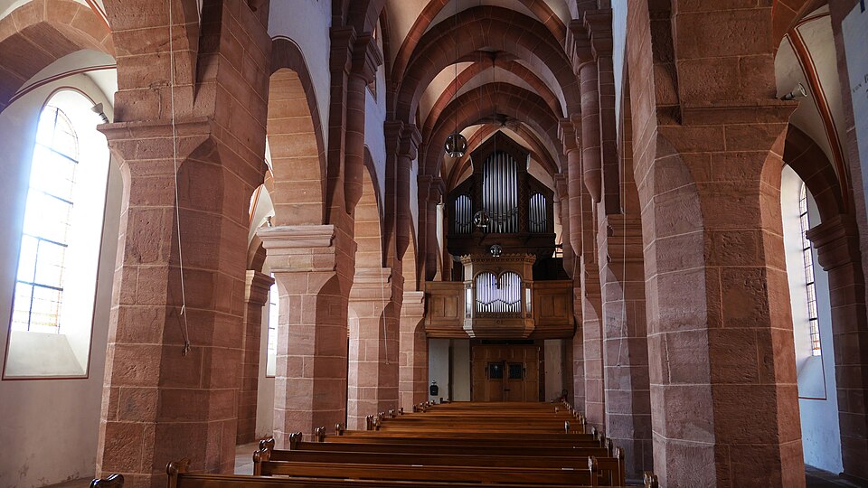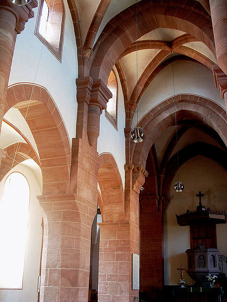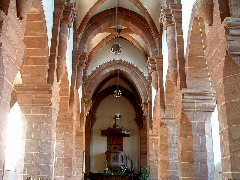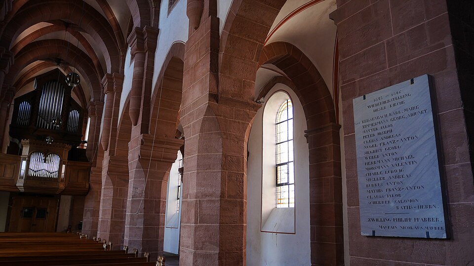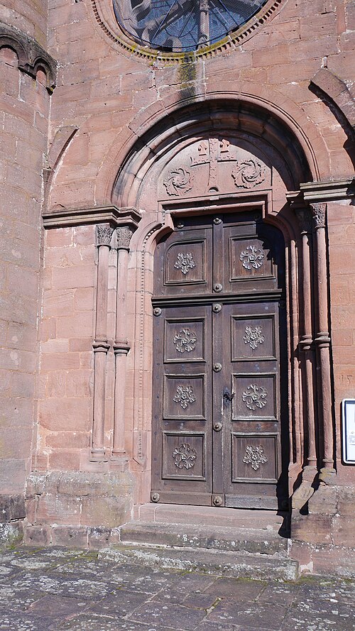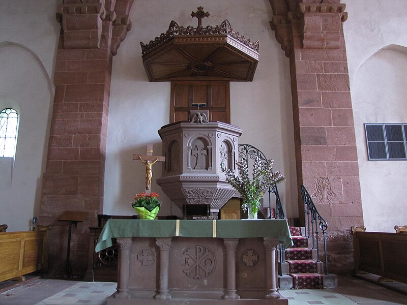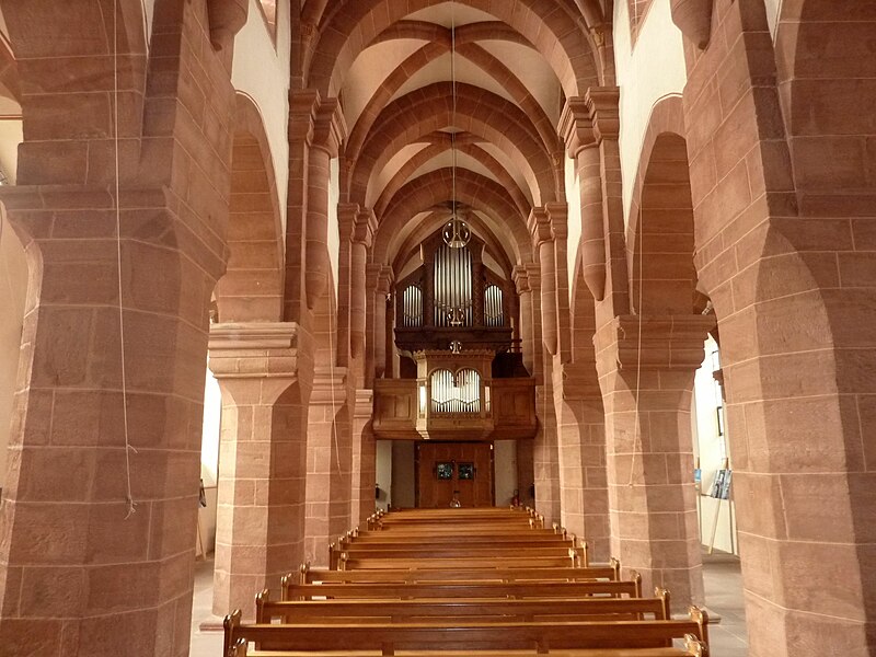 L'église Saint-Adelphe se trouve à Neuwiller-lès-Saverne, dans le Bas-Rhin ; l'édifice est classé au titre des monuments historiques depuis 1862 et fait l'objet d'une inscription depuis le 18 octobre 1989. Les reliques de saint Adelphe, apportées au monastère de Saints-Pierre-et-Paul par l'évêque Drogon vers 830, attirèrent de nombreux pèlerins et entraînèrent l'agrandissement de la chapelle primitive dédiée à saint Jean-Baptiste. Fondée comme église paroissiale et siège d'un chapitre de chanoines au début du XIIe siècle, elle est mentionnée pour la première fois en 1147. Une reconstruction importante débute vers 1190 et, autour de 1220, les reliques sont transférées dans la nouvelle église, faisant du lieu un centre de pèlerinage. Au premier quart du XIIIe siècle, l'édifice fait l'objet d'une reconstruction complète, puis, sans doute à la fin du même siècle, le chœur roman est remplacé par un chœur-halle à trois vaisseaux qui abrite un nouveau tombeau-reliquaire de saint Adelphe. Dans les décennies suivantes, la nef est allongée progressivement vers l'ouest jusqu'à atteindre cinq travées et le transept est développé ; au XIVe siècle le chœur roman à trois absides est remplacé par un chœur gothique imposant à trois nefs et trois travées, sans doute pour améliorer l'accès au reliquaire. À la fin du XIIIe siècle une châsse en bois est placée au-dessus du reliquaire en pierre, et l'on aménage sous l'aile nord du transept et sous des maisons voisines une salle souterraine qui a pu servir de réfectoire aux pèlerins ; le gisant de Louis de Lichtenberg y est installé en 1471. Des niches sont créées dans le croisillon nord au début du XIVe siècle et la grande cloche dite "Bürgerglocke", coulée par Johann Grempp, est installée en 1431. À la fin du XVe siècle, des tapisseries représentant la vie de saint Adelphe ornent le chœur. En 1497, le chapitre des chanoines de Saint-Adelphe est uni à celui de Saint-Pierre-Saint-Paul. Au XVIe siècle, après la cession des droits du siège épiscopal de Metz au comté de Hanau-Lichtenberg, la Réforme est introduite par le comte Philippe de Hanau ; en 1562 les habitants imposent le culte protestant et, l'année suivante, le transept et le chœur sont restitués aux catholiques, établissant un simultaneum, l'un des premiers en Alsace. Les troubles se poursuivent pendant la guerre de Trente Ans ; en 1633 une garnison française est cantonnée à Neuwiller. La question de l'usage du transept est tranchée le 31 août 1683 : les catholiques obtiennent l'usage exclusif du transept et du chœur après l'édification d'un mur de séparation et l'ouverture d'une porte latérale dans le croisillon sud, tandis que les protestants conservent l'usage des cloches, la "Bürgerglocke" restant commune aux deux cultes ; au-dessus de l'entrée ouest du croisillon sud est gravée une citation de Matthieu en latin accompagnée d'un chronogramme daté de 1684. À la Révolution, le simultaneum est supprimé et l'abbatiale est attribuée à la paroisse catholique ; plus tard, en 1800, l'église Saint-Adelphe est rattachée à la paroisse protestante tandis que l'abbatiale devient paroisse catholique. Le chœur gothique est vendu puis démoli en 1824 et le transept sert un temps de remise pour les pompes à incendie avant d'être réuni à la nef en 1835. La flèche du clocher, démolie en 1819, est reconstruite lors d'une importante campagne de restauration conduite de 1845 à 1847 par l'architecte Aloyse Vincent Maestlé, qui rétablit également le couronnement des tourelles occidentales, réunit le transept à la nef et supprime les tribunes encombrant les bas-côtés ; une inscription commémorative apposée à la pile nord-ouest de la croisée rappelle ces travaux et une cérémonie d'inauguration a eu lieu le 5 juillet 1846. Les travaux comprenaient encore le percement d'une porte dans le croisillon nord et la construction d'une tribune au fond de la nef pour recevoir le nouvel orgue de la manufacture Stiehr-Mockers, installé le 27 novembre 1850. Les contreforts du collatéral sud prennent leur forme actuelle en 1876, date inscrite au sommet de l'un d'eux. Enfin, dans une maison accolée au mur nord du transept subsiste le niveau inférieur d'un bâtiment qui fut sans doute élevé par le chapitre des chanoines, vestige du dispositif conventuel lié à l'église.