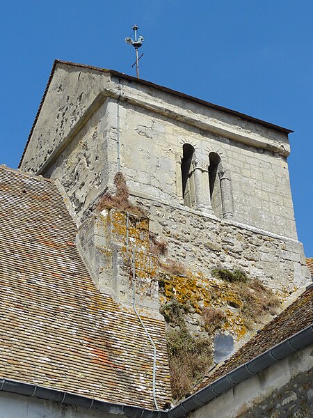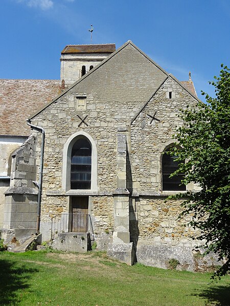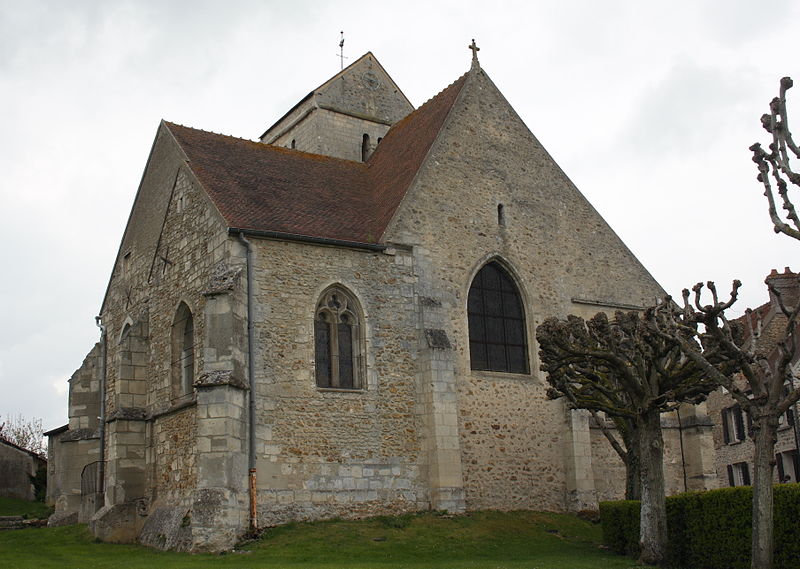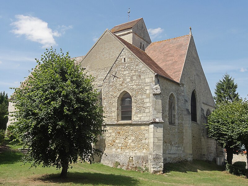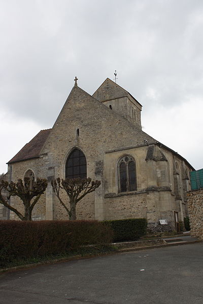 Implantée au centre du village, au croisement de la rue de la Mairie et de la rue de l'Église près de la RD 983, l'église n'est pas alignée sur la voirie; son petit parvis occidental, qui donne accès à l'unique portail, se trouve à l'étroit entre la nef et une maison particulière. Le pourtour sud de l'édifice est bordé d'habitations mais il reste possible d'en faire le tour ; l'élévation méridionale du chœur et le chevet donnent sur une grande pelouse arborée correspondant à l'ancien cimetière déplacé en 1879.