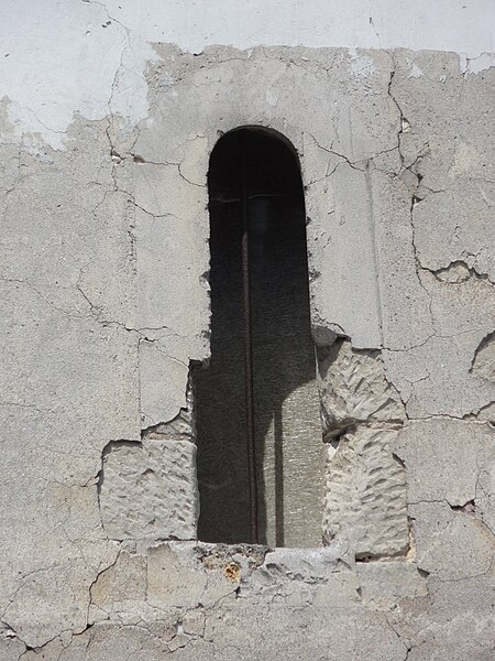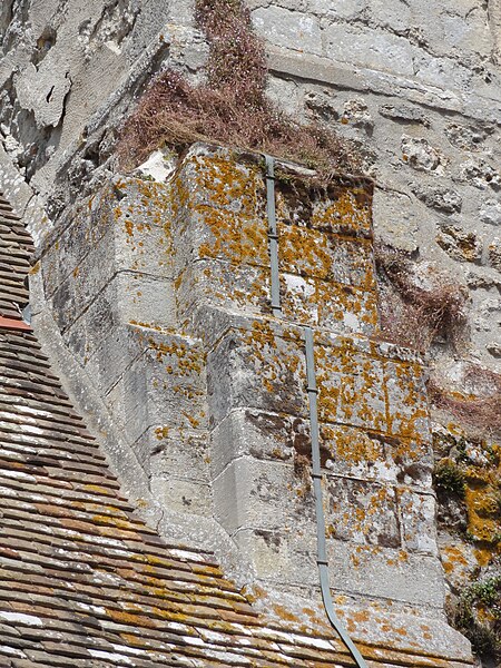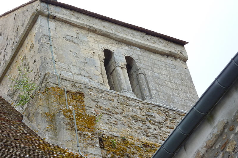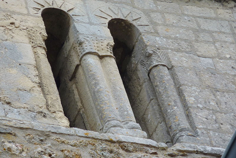 À l'extérieur, l'édifice est construit en pierre calcaire locale, taillée pour les éléments architecturaux et en moellon pour les remplois, avec des enduits localement simulant un appareil régulier. La façade occidentale a été remaniée à l'époque moderne et le clocher conserve son appareil roman singulier : linteaux et colonnettes monolithiques aux chapiteaux troués, compositions et proportions peu communes dans le pays, et la couverture en bâtière qui caractérise l'élévation. Les parties orientales montrent des reprises successives, des contreforts obliques et des remplages Renaissance ou flamboyants correspondant aux diverses campagnes de la fin du Moyen Âge et de l'époque moderne.