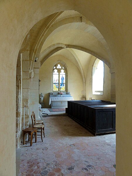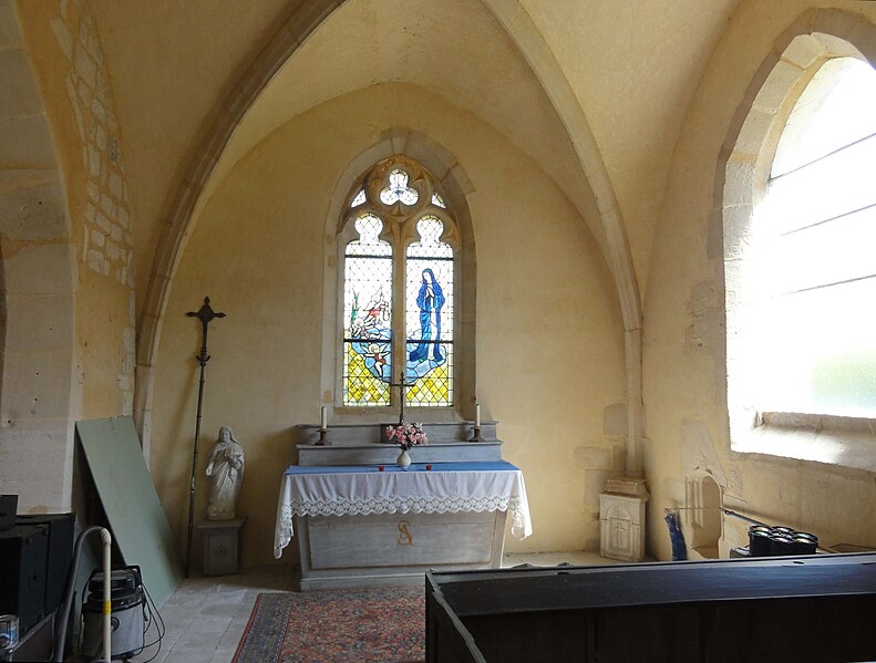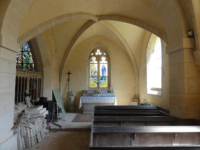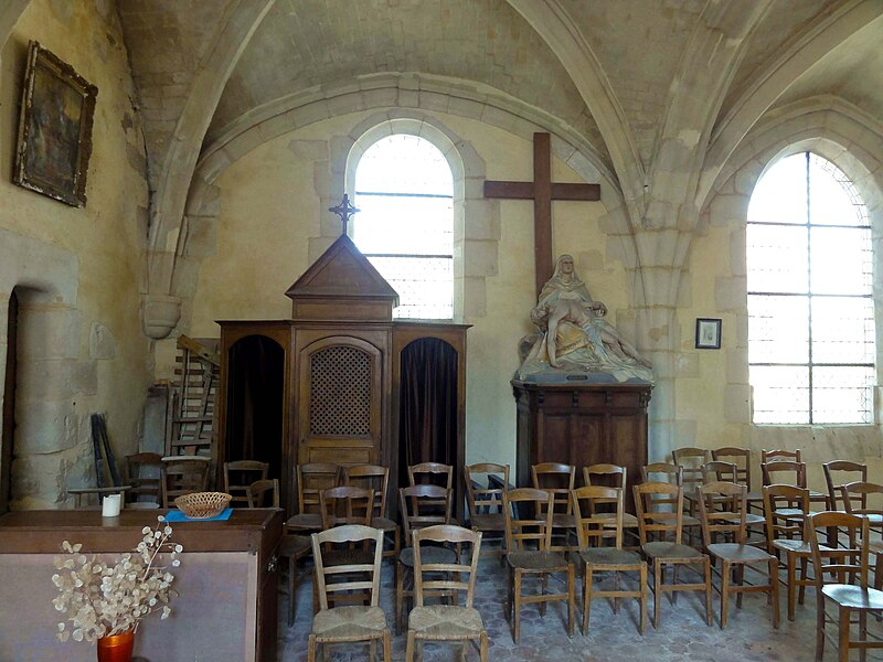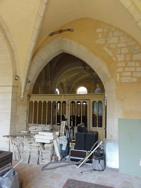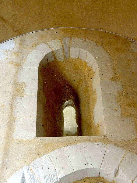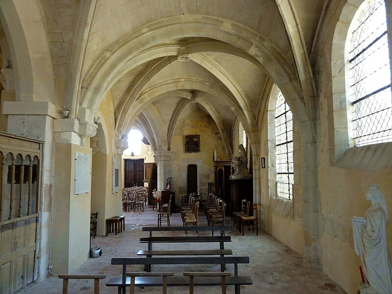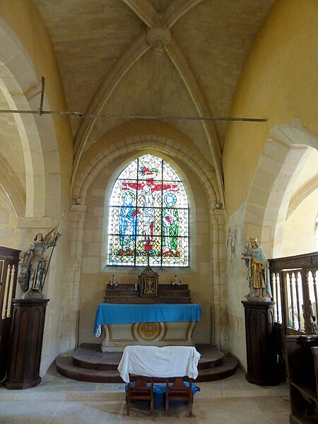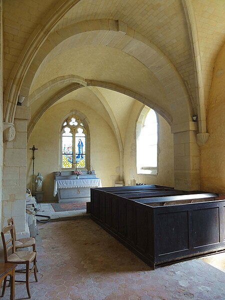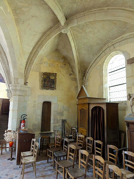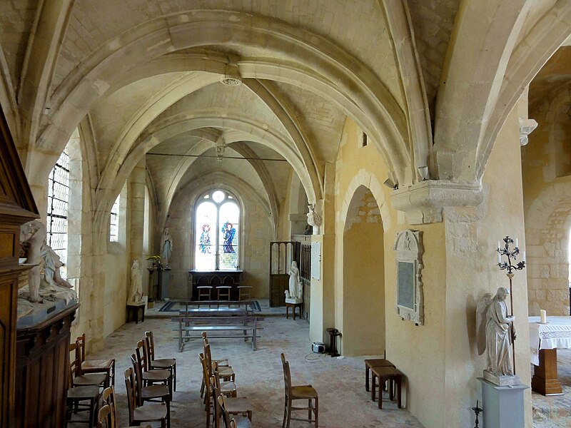 À l'intérieur, outre les vestiges romans visibles dans la nef et la base du clocher, les voûtements et les clés de la Renaissance témoignent des campagnes de la fin du Moyen Âge et de l'époque moderne ; des formerets et chapiteaux romans subsistent dans le chœur, dont certains étaient autrefois masqués sous un enduit et ont été révélés lors des restaurations récentes. La charpente en carène renversée du XVe siècle, prévue pour un lambris jamais posé, illustre un changement de projet au profit du voûtement d'ogives. Les décors des embrasures romanes encore lisibles conservent une polychromie architecturale médiévale à base d'ocre et de motifs cruciformes.