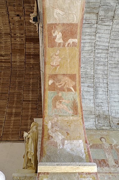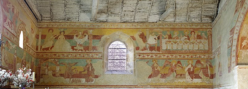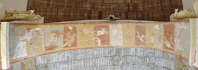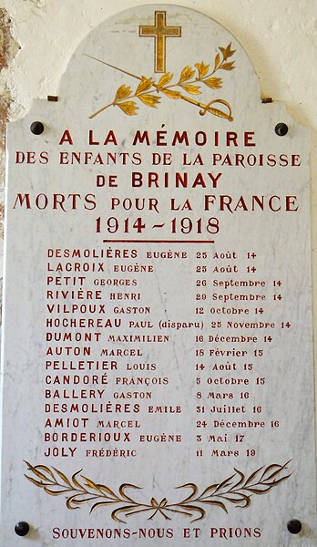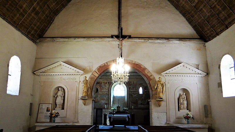 L'église Saint-Aignan est une petite église catholique située à Brinay, dans le département du Cher. Elle présente un plan rectangulaire avec une nef et un chœur, ce dernier apparaissant plus étroit que la nef. Un clocher carré, coiffé d'une flèche aiguë, surmonte la façade occidentale et sa base pénètre dans la nef. Devant la façade a été élevé un porche maçonné couvert en appentis, appelé caquetoir. L'intérieur est couvert de voûtes en bois portées par une ferme; le chœur et la nef sont séparés par un mur percé d'une arcade cintrée à intrados plat. Le mur plat du chevet, en petits moellons presque réguliers, montre deux baies bouchées qui s'ouvraient sous un arc cintré formé de claveaux très minces reliés par de larges joints, l'arc étant souligné par une archivolte de petites briques terminée de part et d'autre par les amorces d'un cordon. Le chœur correspond à la chapelle primitive, édifiée au XIe siècle, tandis que la nef actuelle a été ajoutée au XIIe siècle; elle est éclairée par des fenêtres en plein cintre et communique avec le chœur par une arcade cintrée. Le clocher a été élevé au XVIIe siècle; la cloche porte la date de 1685. Le caquetoir date du XIXe siècle. Les peintures murales romanes du chœur, découvertes en 1911-1912 et relevées par André Humbert en 1912, constituent l'élément le plus remarquable de l'édifice. Par le style des mouvements, des vêtements et des coiffures, ces peintures sont attribuées au milieu du XIIe siècle. Elles couvrent les quatre murs du chœur : sur les parois nord, est et sud, deux registres illustrent les épisodes majeurs de la vie de Jésus avant la Passion, tandis que le mur ouest présente des prophètes et des évangélistes. Les scènes représentent notamment l'Annonciation, la Nativité, l'annonce aux bergers, l'adoration des Mages, la Présentation au Temple, le songe de Joseph et la fuite en Égypte, le Baptême du Christ, la chute des idoles, la tentation au désert, les noces de Cana et le massacre des Innocents. L'intrados de l'arcade qui ouvre sur la nef est décoré des travaux des mois répartis dans douze cartouches. L'édifice a été classé au titre des monuments historiques en 1972.