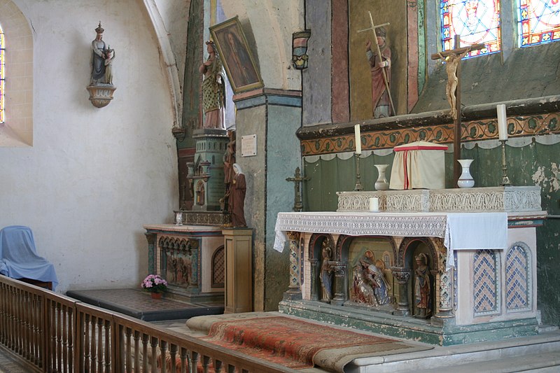 L'église Saint-Aignan de Chalou-Moulineux, dans l'Essonne, est consacrée à saint Aignan et présente une architecture principalement romane. Inscrite aux Monuments historiques par arrêté du 6 mars 1926, elle conserve des vestiges de l'édifice primitif, notamment une partie de la nef et le portail roman. Construite au XIe siècle, elle appartenait au chapitre de Saint-Aignan d'Orléans avant d'être cédée à l'ordre du Temple en 1183 par la reine Alix, mère de Philippe Auguste. Les Templiers entreprirent des rénovations et des agrandissements au XIIIe siècle. Après la chute du Temple en 1307, l'église passa à l'ordre de l'Hôpital Saint-Jean de Jérusalem, qui la conserva jusqu'à la Révolution. Elle a subi de sévères modifications lors des guerres de religion et a reçu une voûte en berceau lambrissée en 1583. Les fresques des piliers du chœur, qui égrènent la liste des commandeurs templiers puis hospitaliers ainsi que des curés de Chalou, et certains vitraux représentant les processions du XIXe siècle à la source Sainte-Apolline doivent leur réalisation au zèle patrimonial de l'abbé Huguenot. À la fin du XXe siècle, la commune a mené plusieurs travaux de mise en valeur : rénovation de la voûte lambrissée, démolition de l'ancien presbytère pour désenclaver l'édifice, restauration des murs extérieurs, pose d'un vitrail au-dessus du portail et création du jardin public Abbé-Huguenot. Parmi le mobilier remarquable figurent des fonts baptismaux du XIIe siècle, une Vierge à la grappe de raisin du XVIe siècle, une statue de saint Thomas Becket et les statues des saints patrons Aignan et Apolline. La façade occidentale, le portail avec son chapiteau sculpté, l'autel et le cartouche peint par l'abbé Huguenot constituent des éléments visibles de l'intérieur et de l'extérieur de l'église.