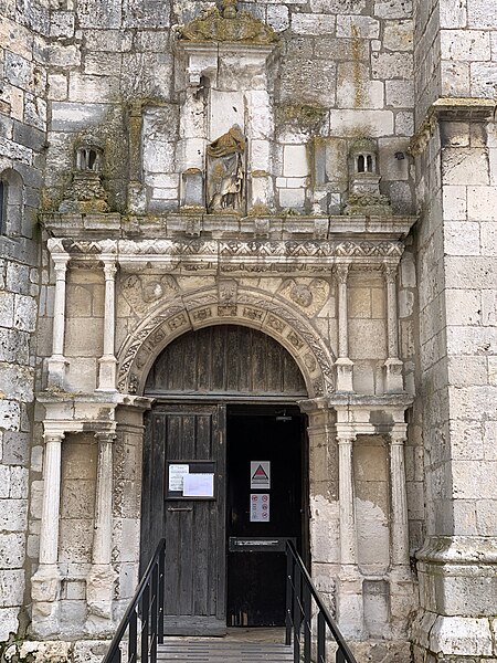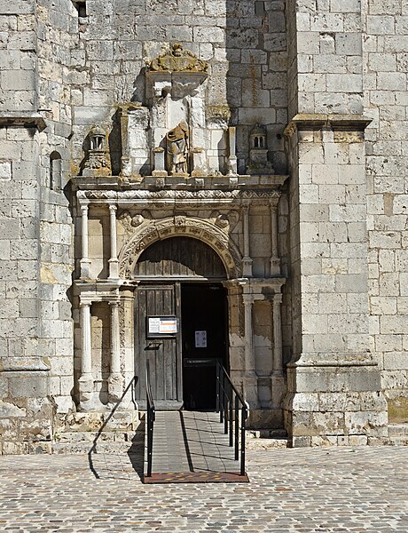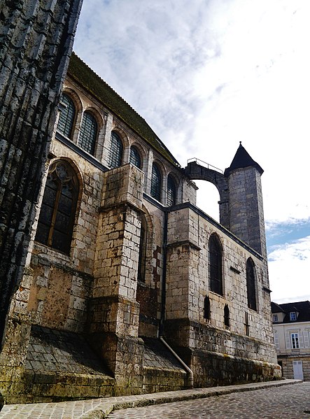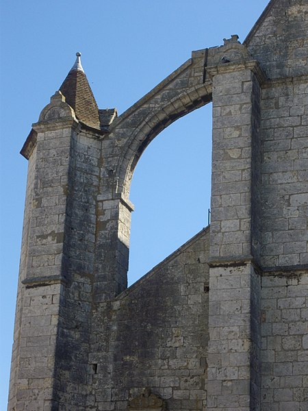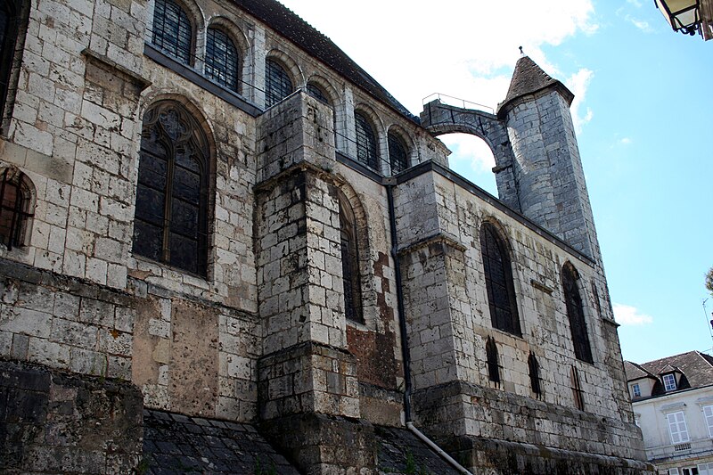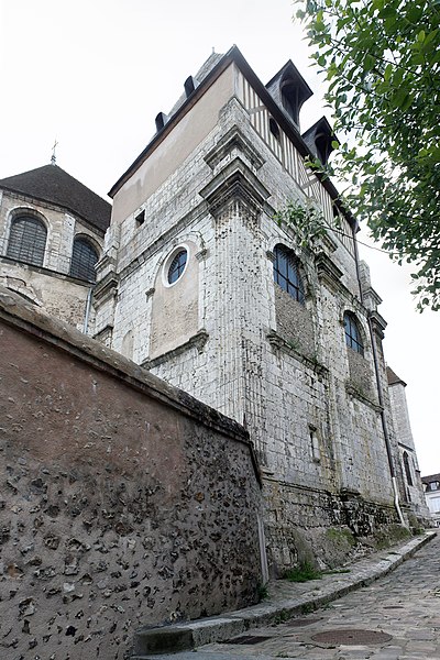 La construction présente des éléments gothiques et des détails de la première Renaissance : colonnettes d’inspiration antique, profils de piliers et décors de tympans flamboyants. Le petit portail nord porte la date de 1541; l’architecte est peut‑être le même que celui de l’église Sainte‑Foy, dont une voûte projetée pour la nef fut finalement abandonnée. La tourelle située à gauche appartient aux XVIe–XVIIe siècles et est reliée à l’édifice par un arc‑boutant muni d’un escalier daté du projet de 1541; les culées prévues pour d’autres arcs‑boutants restent visibles sans emploi. La galerie du second étage a été élevée en 1625 sous Louis XIII; la nef est couverte d’un bardeau de bois et les bas‑côtés conservent un triforium.