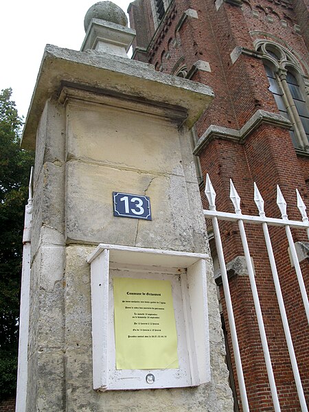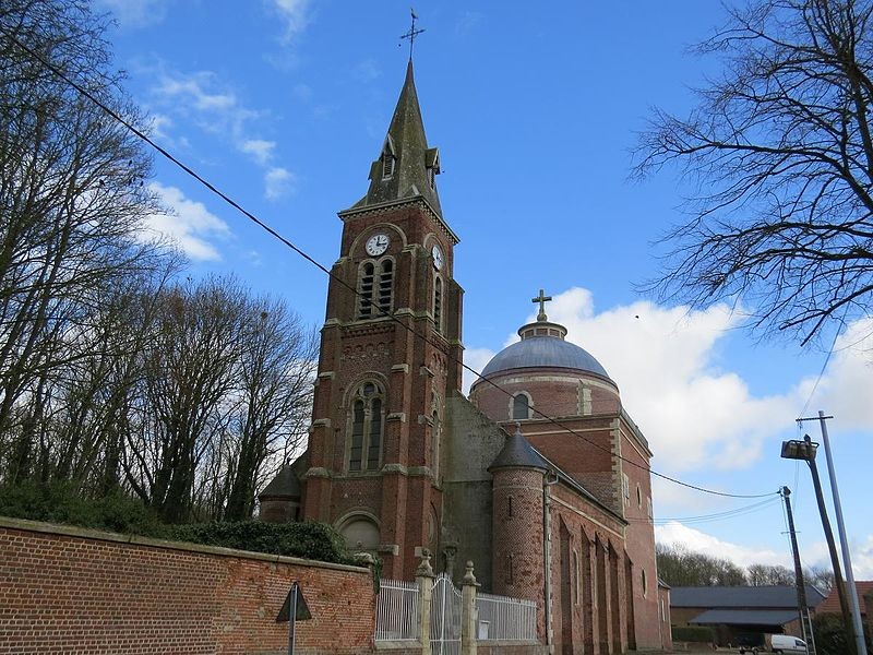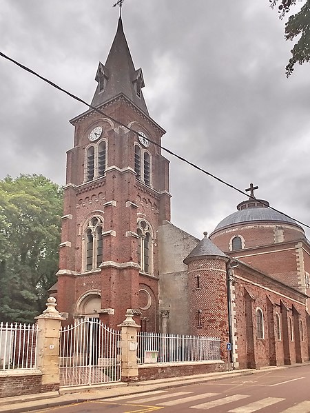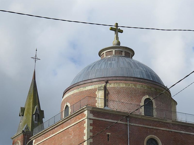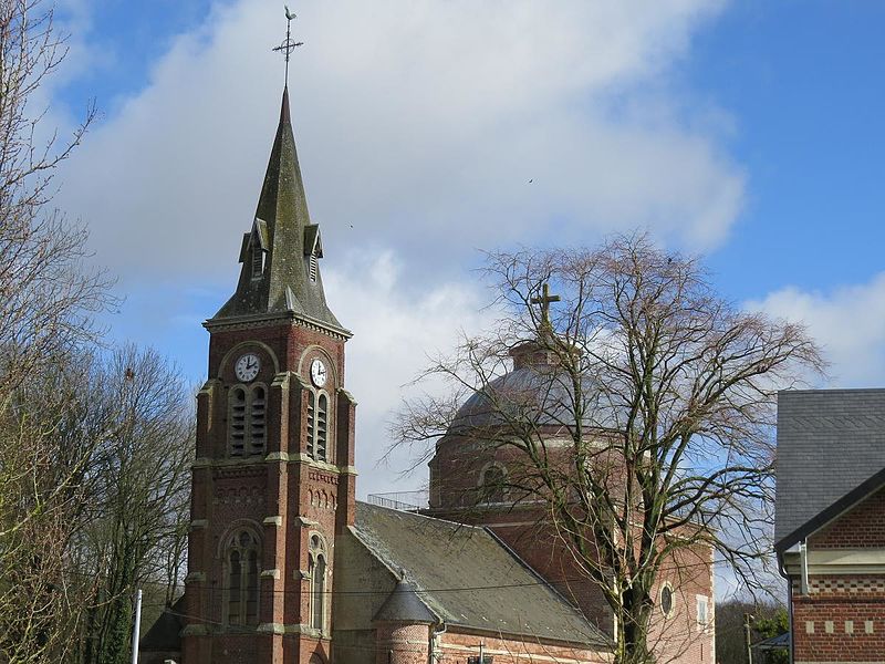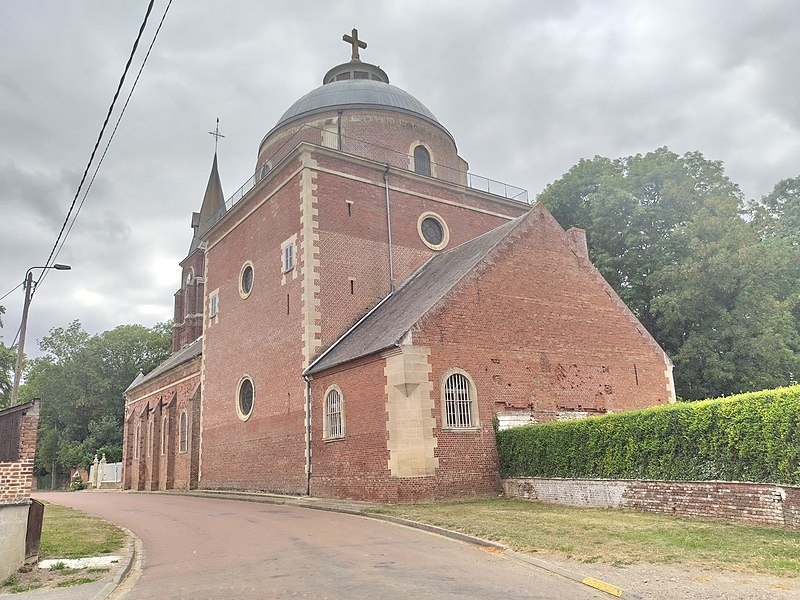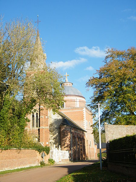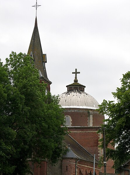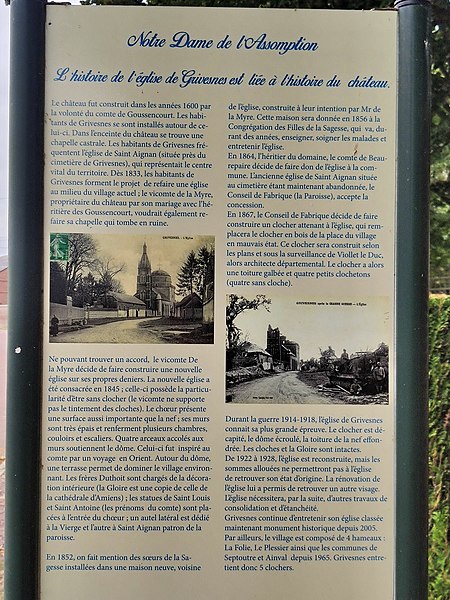 L'église Saint-Agnan de Grivesnes (Somme) se situe dans le village de Grivesnes, au sud du département. Elle a été construite en briques et pierre entre 1835 et 1842 sur les plans du vicomte Antoine Louis Gabriel de La Myre, dans un style néo‑classique. L'édifice adopte un plan presque carré avec un transept tronqué et une coupole hémisphérique, évoquant l'architecture grecque ou byzantine et lui conférant son originalité. Le clocher, élevé entre 1867 et 1875, est tantôt attribué à Viollet‑le‑Duc, tantôt associé à l'architecte Paul Delefortrie selon les sources. Bombardée en 1918, l'église perdit son clocher et sa coupole s'effondra ; la reconstruction menée à partir de 1922 par l'architecte Louis Duthoit utilisa le béton. L'intérieur a été décoré par les frères Duthoit, qui ont réalisé « La Gloire du Cœur de Jésus » du chœur, le maître‑autel et les autels latéraux ; une partie du mobilier mobile est classée. Ludovic de La Myre fit don de l'église à la commune en 1890 ; accolé à l'édifice se trouve le caveau encore utilisé de la famille de Beaurepaire de Louvagny. La famille de Beaurepaire avait offert un orgue détruit pendant la Première Guerre mondiale ; en 1928 la commune acheta un instrument à la maison Convers & Cie, successeur de Mutin‑Cavaillé‑Coll, provenant de la Sorbonne et construit au XIXe siècle par Aristide Cavaillé‑Coll. L'église, son décor intérieur et la cour clôturée devant l'entrée sont protégés au titre des monuments historiques par arrêté du 29 mars 2005.