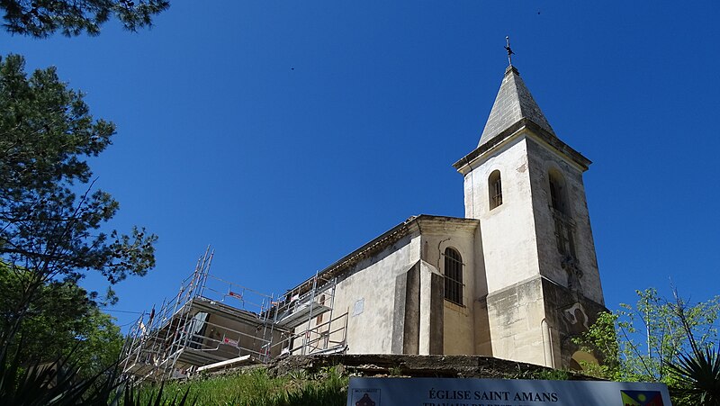 L'église paroissiale Saint-Amand résulte de plusieurs agrandissements réalisés au XIXe siècle à partir d'un petit édifice plus ancien. Son intérêt principal tient à la décoration intérieure contemporaine du peintre Nicolas Geschny, qui a entièrement recouvert l'édifice de fresques. Une chapelle est consacrée à la vie de saint Roch, représentée en images accompagnées de textes en occitan. D'autres compositions s'inspirent de l'iconographie orthodoxe, parmi lesquelles figurent le Christ de l'Apocalypse et la Destruction de Babylone.