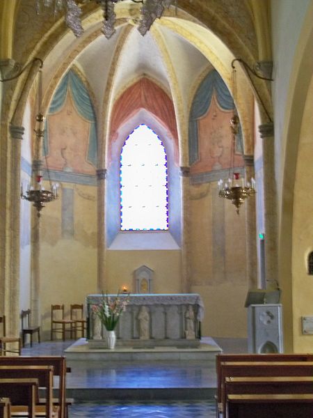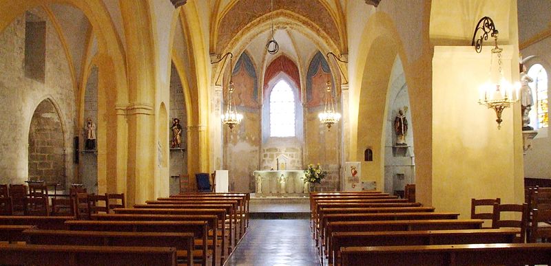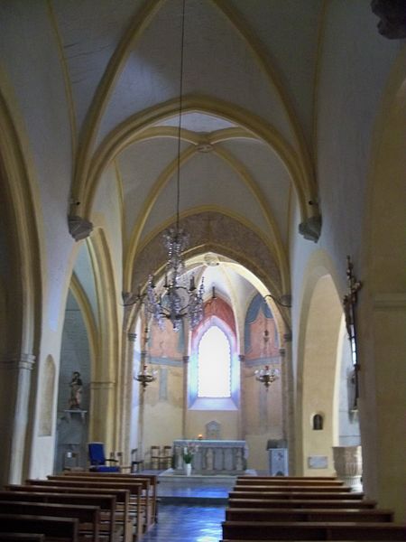 L'édifice est aujourd'hui un ensemble architectural complexe à trois nefs : un collatéral roman du XIIe siècle de quatre travées dont l'abside a été supprimée, une large nef centrale gothique de trois travées datée du début du XIVe siècle et percée d'une grande arcade du XVIIIe siècle, un chœur sous abside polygonale gothique de la fin du XIVe siècle et un bas‑côté gothique probablement ajouté à la fin du XIVe siècle. Un narthex gothique, placé devant l'entrée de la nef romane et vraisemblablement contemporain du clocher au cours du XIVe siècle, complète l'ensemble.