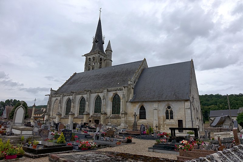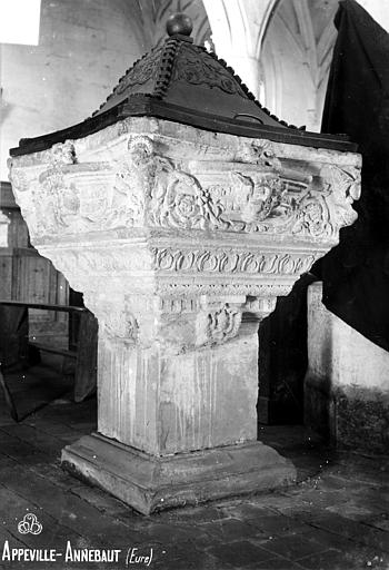 L'église Saint‑André est une église catholique située à Appeville‑Annebault dans le département de l'Eure. Classée au titre des monuments historiques en 1862, elle associe un chœur du XIVe siècle à une nef et une tour élevées au XVIe siècle, reconstruits en grande partie grâce au mécénat des frères d'Annebault. Le chœur primitif, en maçonnerie de silex et épaulé de contreforts anciens, conserve une fenêtre aujourd'hui occultée et une sacristie gothique éclairée par une demi‑fenêtre ogivale. La nef, commencée en 1518 d'après une inscription, est en pierre et entièrement voûtée ; elle est bordée de deux collatéraux étroits séparés par six colonnes monocylindriques à base hexagonale et ornée de clefs de voûte travaillées, dont l'une représente la colombe et une autre saint Michel terrassant le dragon. Sous le toit court une corniche profondément sculptée d'animaux et de fruits ; des gargouilles, des pinacles à crochets et des gables ornés achèvent le décor extérieur. La tour carrée se termine par une flèche en charpente ardoisée ponctuée de lucarnes ; elle est flanquée d'une tourelle d'escalier en poivrière. Le portail occidental à arc en accolade et les grandes fenêtres nord à remplage flamboyant datent également du XVIe siècle. Les armes des frères Jacques et Claude d'Annebault figurent en divers endroits de l'édifice et témoignent de leur participation financière à la reconstruction. La famille, originaire du Pays d'Auge et ayant donné son nom à Appeville, soutint la restauration de l'église au début du XVIe siècle ; Jacques et Claude d'Annebault sont par ailleurs inhumés dans l'église. À l'intérieur, une poutre de gloire en fer forgé portant un Christ du XVIIIe siècle sépare le chœur de la nef ; le mobilier comprend des retables et des toiles du XVIIIe siècle dans les chapelles latérales, une chaire de la fin du XVIIIe siècle, des fonts baptismaux de la fin du XVIIe siècle et des fragments de vitraux du XVIe siècle représentant la Trinité et des anges. On y trouve aussi une statue polychrome de saint Milfort en pierre du XVIe siècle et une Vierge à l'Enfant en bois du XVIIIe siècle. Plusieurs inscriptions et fondations de messe anciennes sont conservées, tout comme une cloche portant une inscription gravée. Le chevet plat du chœur, percé d'une fenêtre murée, présente des traces de travaux inachevés qui semblent avoir été interrompus après la disgrâce des mécènes. La tour, dont le rez‑de‑chaussée est percé d'une fenêtre à tracerie flamboyante, possède un étage de beffroi ajouré de baies cintrées divisées par des meneaux et surmonté de gargouilles aux angles. Au chevet se trouve la fontaine Sainte‑Marguerite, accessible par quelques marches ; une statue en bois provenant de la léproserie de l'Ortier y est placée au fond d'une niche et un petit bassin recueille des eaux filtrant à travers le cimetière, la tradition du pèlerinage s'y perpétuant. Le caveau de la famille d'Annebault, partiellement visible, a été aménagé et séparé autrefois, avec un accès qui existe aujourd'hui muré depuis l'intérieur de l'église. La porte latérale a été refaite en 1819 et l'édifice a reçu d'autres interventions intérieures au XIXe et XXe siècle.