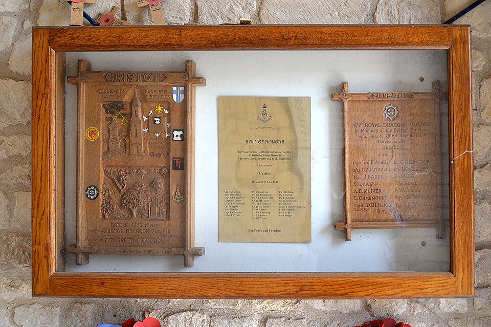 L'église Saint‑André se situe dans le bourg de Cristot, dans le département du Calvados en Normandie. Selon les sources, l'édifice remonte aux XIIe‑XIIIe siècles. Le chœur est inscrit au titre des monuments historiques depuis le 16 mai 1927 et constitue la partie protégée de l'édifice. Ce chœur a été très endommagé lors de la bataille de Normandie et n'en subsiste que des vestiges. La nef demeure perceptible et peut être observée depuis l'emplacement du chœur. L'église conserve un vitrail représentant saint André, des plaques commémoratives et une Vierge à l'Enfant. Parmi les sources consultées, Arcisse de Caumont évoque l'édifice dans sa Statistique monumentale du Calvados (t. 1, 1846).
