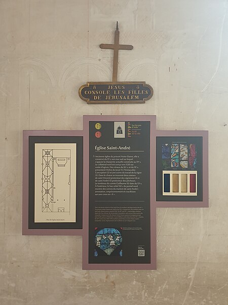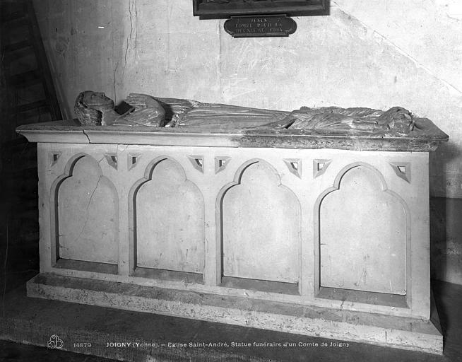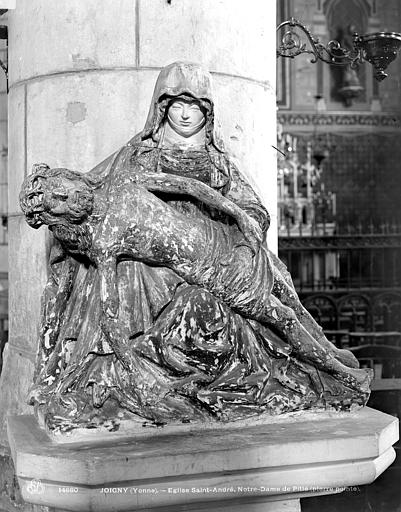 L'église Saint-André est une église catholique située à Joigny, dans l'Yonne ; elle dépend pour le culte de l'archidiocèse de Sens-Auxerre. Elle se trouve place de la République, dans la ville haute. En 1080, le comte Geoffroy de Joigny fait venir des moines du prieuré de La Charité-sur-Loire pour fonder un prieuré dans les faubourgs de la ville. La seconde enceinte des remparts finira par englober ce nouveau quartier d'artisans et de vignerons. Au tout début du XIIIe siècle, l'église du prieuré devient paroissiale et est agrandie. Initialement placée sous le vocable de Notre-Dame, elle prend le nom de Saint-André au XVIe siècle lors de réaménagements nord et est après l'incendie qui ravagea la ville en 1530 : un bas-côté est prolongé avec voûtes d'ogive et le chœur reçoit un chevet plat. La large nef actuelle reprend la nef primitive du XIe siècle ; la façade occidentale est refaite vers 1550 et le collatéral est formé de cinq travées à voûtes ogivales de style gothique tardif. L'édifice a servi de sépulture aux comtes de Joigny. À l'intérieur se remarquent une Vierge de Pitié remarquable de la fin du Moyen Âge, une dalle funéraire en pierre du XIIIe siècle représentant Guillaume, comte de Joigny, et une dalle funéraire d'un prêtre du XVe siècle. La Vierge de Pitié et la dalle de Guillaume ont été classées au titre des objets des monuments historiques en 1992. L'église elle-même est classée au titre des monuments historiques depuis 1971. Sur la dalle de Guillaume, le comte est représenté tête nue, les mains jointes, vêtu d'une longue robe à plis serrés retenue par une ceinture, les pieds appuyés sur un chien et encadré de deux angelots tournés vers le gisant. Des images de l'église sont accessibles sur Wikimedia Commons. Pour complément, on pourra consulter la liste des monuments historiques de l'Yonne ainsi que les églises Saint-Jean et Saint-Thibault de Joigny.