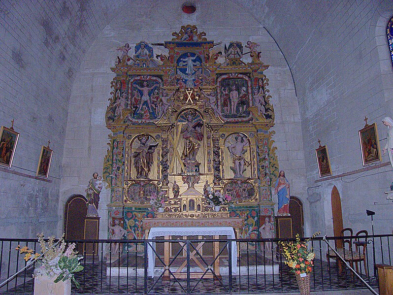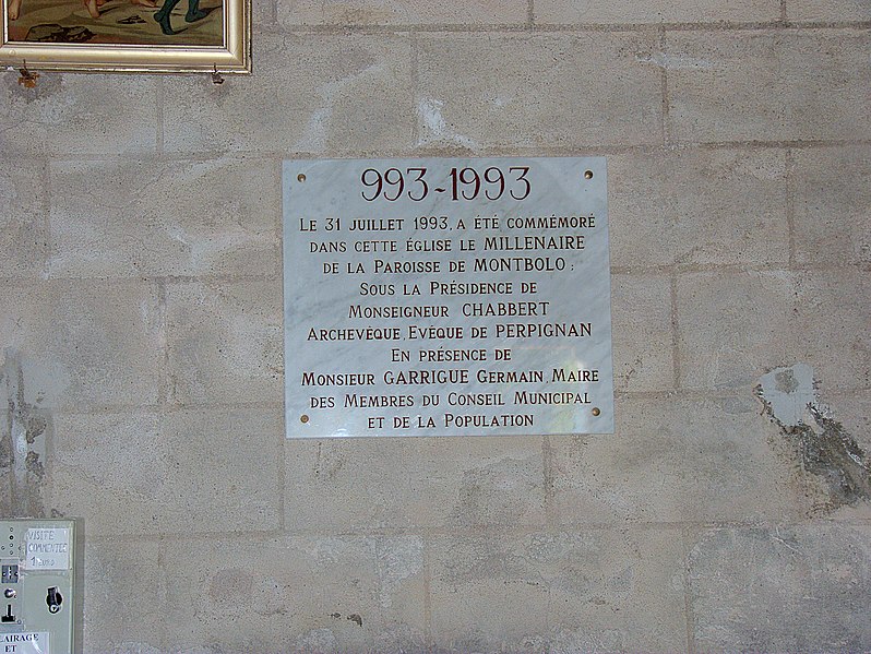L'église paroissiale Saint-André de Montbolo, dans les Pyrénées-Orientales, est un édifice roman élevé au XIIe siècle et consacrée en 1130. La paroisse est mentionnée dès 993. L'église a été fortifiée au XIVe siècle par surélévation des murs gouttereaux et percement de meurtrières, permettant un chemin de ronde et l'élévation de deux tours barlongues aux murs est et ouest. Elle a été inscrite au répertoire des monuments historiques le 29 mars 1993. L'édifice présente un plan oblong d'environ 30 mètres sur 10 mètres, à nef unique voûtée en berceau brisé, sans démarcation nette entre la nef et le chœur. Sa principale originalité tient aux deux absides jumelles, couvertes en cul-de-four et logées dans un chevet rectangulaire, ainsi qu'à des niches aménagées dans l'épaisseur des murs latéraux. Située au sommet du village, rue de l'Église et presque en face de la mairie, l'église conserve le cimetière à l'ouest du bâtiment. L'intérieur fut remanié à l'époque baroque : une tribune datée de 1627 fut installée à l'ouest et des retables obstruèrent alors les absides. Vers 1900, une restauration a cherché à restituer l'aspect primitif de l'édifice ; les retables ont été conservés et le maître-autel n'a pas été déplacé, une plaque encastrée dans la tribune rappelant ces travaux. Peu après ces réparations, la toiture fut arrachée par une violente tempête en janvier 1900. Plus récemment, le portail méridional a été restauré en marbre blanc, entraînant la disparition de plusieurs éléments du portail d'origine. Le mobilier comprend plusieurs pièces classées : une cloche en bronze datée du troisième quart du XVe siècle, un retable du maître-autel avec ses gradins et ses statues, et un autre retable qui comporte un tableau de saint Jean-Baptiste peint par Antoni Guerra en 1702 (dont une copie de 1715 se trouve à Opoul). Parmi les œuvres anciennes se trouvent aussi une Vierge à l'Enfant en bois du XIIe siècle, un ciboire en argent des XVIIe ou XVIIIe siècles sans couvercle portant le poinçon de Perpignan, un calice en argent du XVIIe siècle et une croix de procession composite attribuée à la limite des XVe–XVIe siècles et remaniée au XVIIIe siècle. L'édifice se rapproche par sa forme et son chevet de l'église d'Espira-de-l'Agly.