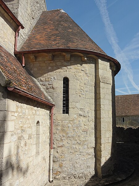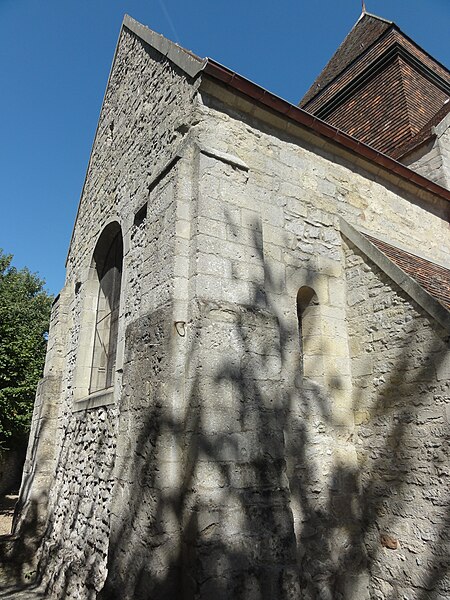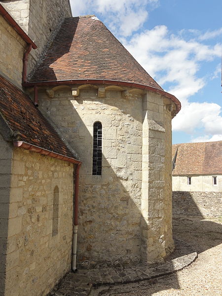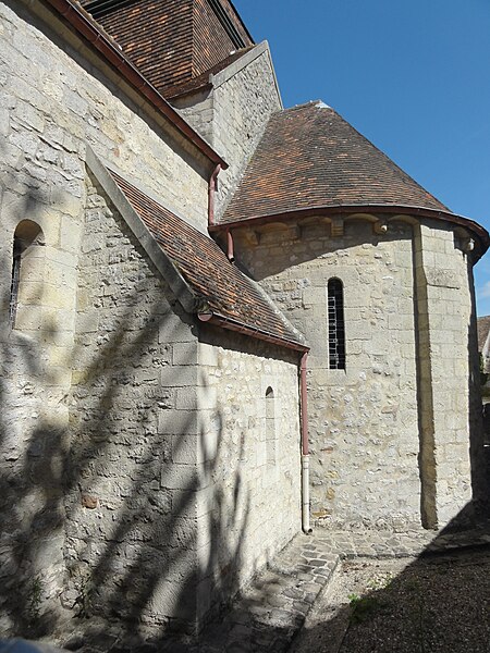 Les parties orientales, construites essentiellement en moellons avec appareillage en pierre de taille autour des baies et des contreforts, révèlent par la juxtaposition de leurs volumes les choix architecturaux précoces du Vexin ; une corniche en segments en anse de panier repose sur une douzaine de modillons moulurés ou sculptés, certains endommagés.