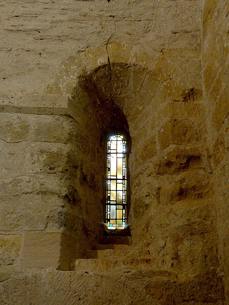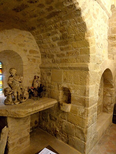 Architecturalement, l'église est orientée de façon assez régulière et se compose d'une nef à charpente apparente, d'un transept aux croisillons voûtés en berceau et pourvus d'absidioles rectangulaires, et d'une abside en hémicycle voûtée en cul-de-four. Le portail occidental, protégée par un toit en appentis, est adossé aux vestiges du clocher détruit ; l'amorce de la cage d'escalier Renaissance est visible à droite en entrant. La nouvelle nef conserve des éléments anciens limités, en particulier le mur oriental avec l'arc triomphal et l'amorce de la tourelle d'escalier ; des peintures murales anciennes représentant des scènes liées au Saint-Esprit et à la Vierge, encore partiellement documentées par la photographie, ont disparu lors des travaux de restauration.