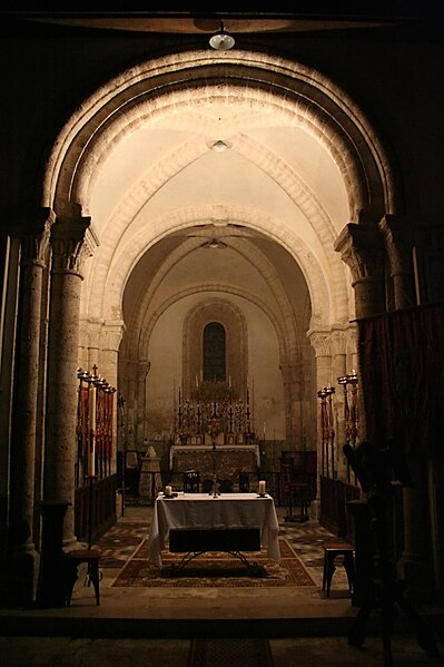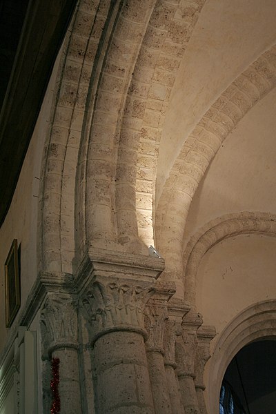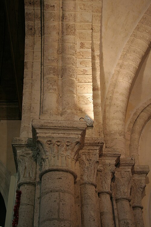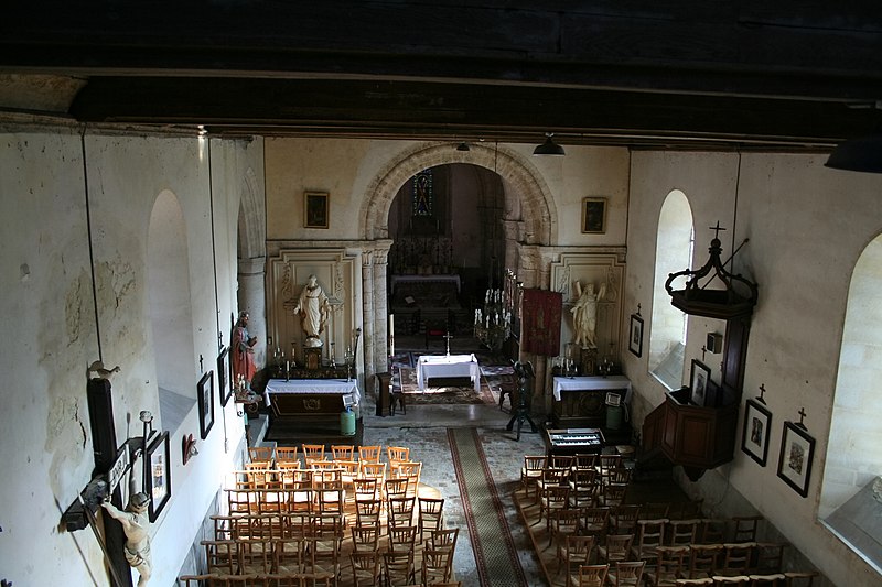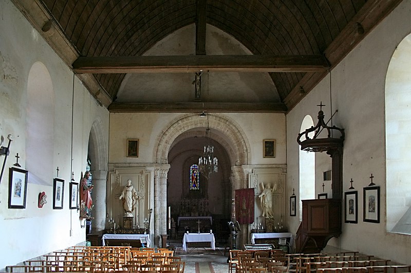 Les murs de la nef sont percés de baies en plein cintre ; les travées de façade ne sont pas symétriques entre les murs nord et sud, comme il est fréquent dans les nefs charpentées. Les trumeaux sont rythmés par des contreforts très plats côté sud et par des contreforts à empattements successifs côté nord, où l'appareil montre des reprises de maçonnerie.