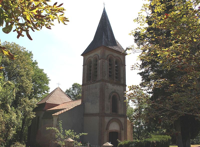Cette petite église classique figurait sur la liste des édifices brûlés par les troupes de Montgoméry en 1569. L'édifice, en partie écroulé, a été reconstruit en 1756-1757 par le maçon Jean Ducasse. Les contreforts et les éléments subsistants de l'ancien mur-clocher paraissent antérieurs à l'époque classique et dateraient du XVe siècle. Le clocher a été agrandi et reconstruit à la fin du XIXe siècle par l'architecte P. Prosper. À l'intérieur, la voûte du chœur a été exhaussée et de grandes fenêtres laissent largement entrer la lumière dans le sanctuaire. L'aménagement du sanctuaire présente les caractéristiques théâtrales de l'art baroque, avec des proportions modifiées, des niveaux de voûtes différenciés, une poussée vers le haut et des variations de lumière.