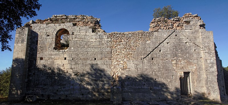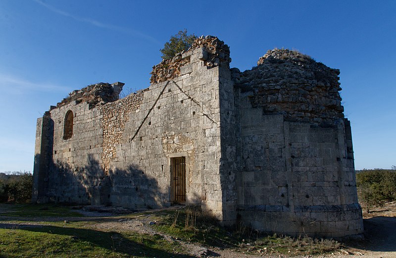 L'ancienne église Saint-André de Souvignargues est une église romane en ruines située dans la commune de Souvignargues, dans le Gard, en région Occitanie. Elle se dresse isolée dans la campagne, à 600 mètres au nord-est du village ; on y accède par le chemin de Saint-Étienne qui part du parking près de l'ancien lavoir à la sortie du village en direction de Montpezat. Le site et la localité sont mentionnés dans des cartulaires sous des formes anciennes du nom, et l'édifice est daté du XIIe siècle ; une pièce de 1031 évoque Sanctus Andreas de Salvagnanicus. L'église est inscrite au titre des monuments historiques depuis le 6 décembre 1949. Une campagne de restauration partielle menée dans les années 1990 par l'association « Amis de l'église Saint-André » a permis une première consolidation, mais ces travaux sont arrêtés depuis quinze ans. La voûte est effondrée et la toiture disparue, tandis que les murs subsistent encore en grande partie à toute leur hauteur. La nef unique, longue d'un peu plus de 14 mètres et large de 5,80 mètres, compte trois travées dont la dernière est plus étroite que les autres ; son sol n'a plus de pavement et est recouvert de gravier qui masque un tissu géo-textile. Les travées sont marquées par des colonnes semi-cylindriques engagées dans des dosserets qui reçoivent directement les formerets ; un chapiteau a été conservé. Ces colonnes présentent à leur base un triple anneau torique et, au sommet, un astragale torsadé ; les corbeilles portent des feuilles d'acanthe et des motifs anthropomorphes ou géométriques. Une corniche ornée d'une frise de feuilles d'acanthe court au-dessus des murs de la nef et marque le départ d'une voûte en berceau quasiment disparue. Le narthex occidental, de style gothique avec voûtement quadripartite ogival, est postérieur à la nef et a probablement supporté un clocher-tour aujourd'hui disparu ; il culmine actuellement à 4,15 mètres et témoigne d'aménagements successifs, dont le rebouchage de la grande porte ouest et l'installation d'un autel dont subsistent les soubassements, ainsi que la présence d'une tribune aujourd'hui non visible. L'abside semi-circulaire conserve sa voûte en cul-de-four ; elle mesure 3,20 mètres de profondeur pour la voûte elle-même et 6,60 mètres au niveau des colonnes qui soutenaient l'ancien arc triomphal, la hauteur au sommet de la voûte atteignant 7,30 mètres. La corniche de l'abside est décorée, avec une frise de tresses à gauche et une frise de feuilles d'acanthe à droite, et se prolonge sur les pilastres de l'arc triomphal. La fenêtre absidiale, à double ébrasement, est surmontée d'un arc torique et retombe sur des culs-de-lampe, dont l'un présente une figure anthropomorphe. Extérieurement, l'édifice est construit en pierre de taille selon un appareil en opus monspeliensis, avec des réfections en moellon ; les parements subsistent surtout en partie basse. Le chevet repose sur un soubassement important destiné à compenser la différence de relief et est orné de fines colonnettes. La façade méridionale, soutenue par trois contreforts dont un est détruit, présente une fenêtre et une porte surmontée des traces d'un auvent ou porche, tandis que la façade occidentale montre une porte en plein cintre aujourd'hui murée. L'état actuel du monument, malgré les interventions passées, soulève des inquiétudes quant à sa conservation.