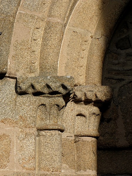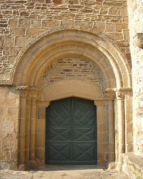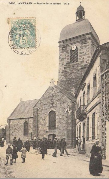 L'église Saint‑André, située à Antrain, commune déléguée de Val‑Couesnon (Ille‑et‑Vilaine), dépend de l'archidiocèse de Rennes et est dédiée à l'apôtre saint André. Malgré destructions, agrandissements et restaurations, elle figure parmi les édifices romans les mieux conservés de l'archidiocèse et illustre un intéressant bâtiment de transition mêlant décor roman et éléments annonciateurs du gothique en Bretagne. Dans la seconde moitié du XIe siècle et au début du XIIe siècle, elle fut donnée par ses propriétaires laïcs aux abbayes de Saint‑Florent en Anjou et de Marmoutier en Touraine. L'application de la réforme grégorienne, notamment l'interdiction de la simonie, semble s'être accompagnée d'une reconstruction générale et de la restitution de l'édifice aux autorités ecclésiastiques. Au tournant du XIIe siècle, l'église passa à l'évêque de Rennes : Herbert puis son successeur Pierre de Dinan mirent fin au partage du patronage exercé par des abbayes étrangères au diocèse et au duché de Bretagne. À l'exception de deux bâtiments plus récents adossés aux murs nord de la nef et du chœur, l'édifice est inscrit au titre des monuments historiques par arrêté du 13 octobre 2023. La structure romane reste largement lisible malgré des interventions aux XVIe, XVIIe et XIXe siècles : l'église présente un plan en croix latine, une courte nef unique, un transept largement débordant et un clocher médian. Une absidiole romane subsiste au nord tandis que le chœur, reconstruit dans un style gothique tardif au XVIe siècle, est de forme pentagonale. Le chevet tripartite d'origine a été déséquilibré par la construction d'une sacristie au XVIIIe siècle remplaçant l'absidiole sud, puis par l'édification d'une chapelle au nord au siècle suivant qui a masqué l'absidiole septentrionale. La croisée du transept est coiffée d'un lourd clocher classique élevé en 1779 et surmonté d'un toit à l'impériale. Parmi les éléments romans se détachent les portails occidental et méridional, les petites meurtrières percées dans les murs épais et les puissants contreforts. La nef, restaurée en 1542 comme l'atteste une sablière de sa voûte lambrissée, présente un mur nord aveugle et un éclairage réduit assuré par la fenêtre ogivale de la façade occidentale et par une fenêtre en plein cintre percée dans le mur gouttereau méridional à l'époque moderne. La croisée du transept constitue l'élément architectural le plus remarquable : quatre piliers fasciculés composés de sept colonnes soutiennent le clocher médian et portent des arcades légèrement brisées. Le carré du transept est couvert d'une voûte domicale d'inspiration angevine, l'une des premières manifestations du gothique en Bretagne. Vingt‑huit chapiteaux d'esprit roman ornent cette partie de l'église et, avec les quatre chapiteaux placés à l'entrée des absidioles, présentent des décors de volutes, de boules, de motifs végétaux, de masques et de figures géométriques taillés dans le granite. L'association d'un répertoire sculpté roman et d'éléments architecturaux gothiques — arcades ogivales et voûtes d'ogives bombées — fait de Saint‑André un édifice de transition. L'absidiole nord conserve un voûtement en cul‑de‑four appareillé en pierre, tandis que le chœur, bâti quelque quatre siècles plus tard dans un style gothique tardif, est couvert d'une voûte lambrissée. Si l'église n'a pas été classée, elle conserve néanmoins des objets mobiliers et de l'orfèvrerie de qualité, dont un maître‑autel de style rocaille signé Étienne Le Bezot et inscrit au titre des objets des monuments historiques depuis le 21 novembre 1948, des stalles et boiseries du XVIIIe siècle, ainsi qu'un orgue d'esthétique romantique construit par la manufacture Debierre de Nantes en 1893. Cet instrument comprend deux claviers manuels transpositeurs de 56 notes, un pédalier non transpositeur de 30 notes, dix registres pour neuf jeux réels et une transmission mécanique ; il est entièrement expressif par bascule et la coupure du Bourdon du Grand‑Orgue s'opère entre FA2 et FA#2.