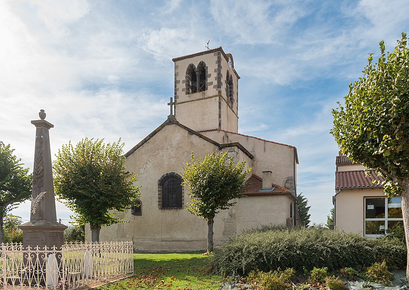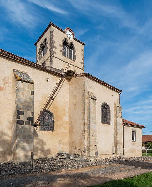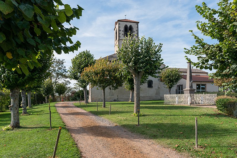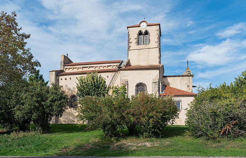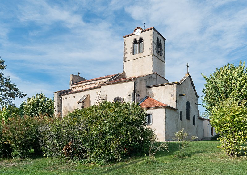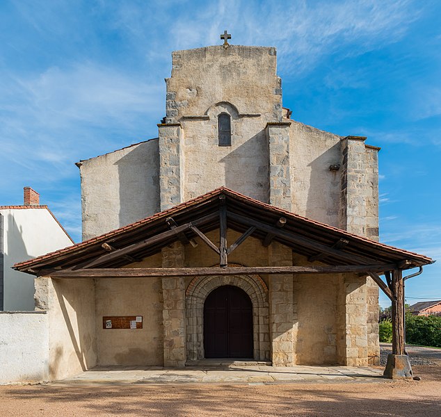 L'église Saint-André est un édifice roman archaïque, marqué par une nef étroite et des arcades sans colonnes. La datation du chevet, attribuée à la seconde moitié du XIe siècle par des travaux historiques, indique que son abside, sans doute initialement semi-circulaire, fut modifiée lors de l'achèvement de la construction au début du XIIe siècle. Le clocher a été remanié aux XVe et XIXe siècles. Au XIXe siècle, l'édifice a fait l'objet de transformations touchant le chevet, le clocher et les percements nord et sud; l'aménagement intérieur date également du XIXe siècle, avec un décor peint et des vitraux de Champrobert de 1875. Des travaux d'agrandissement prévus en 1871 ne furent pas réalisés. En 1894, selon la source, l'architecte Souliac dirigea une importante campagne de restauration conduite par l'entrepreneur Louis Puissauve, qui comprit la reprise des murs du chevet, la surélévation de l'ensemble des murs, la réfection des toitures et l'application d'enduits. Les travaux furent réceptionnés en 1896; c'est probablement à cette date que furent exécutés les décors intérieurs.
