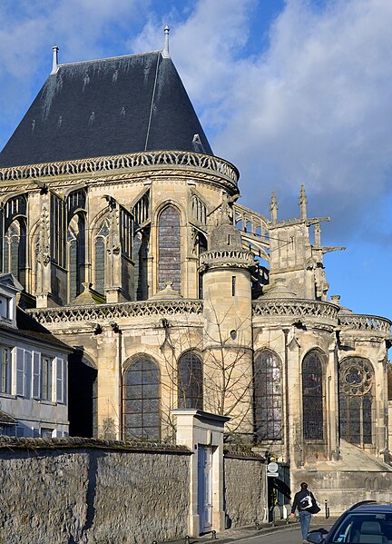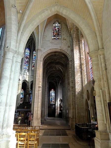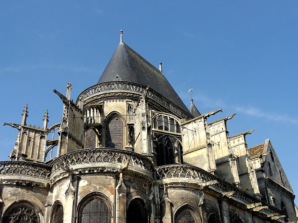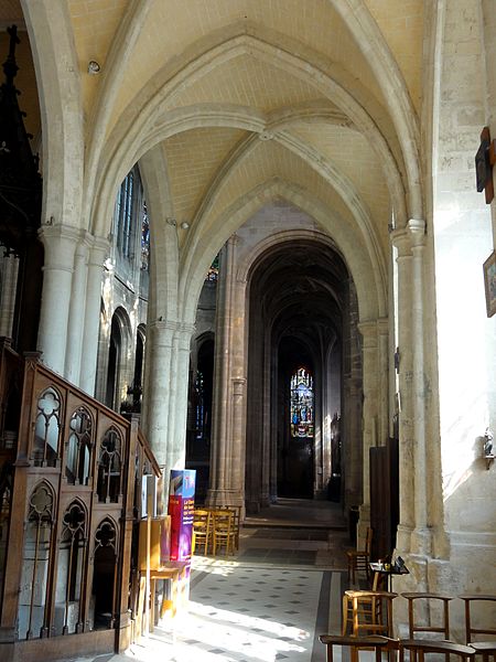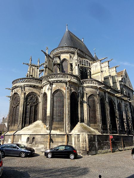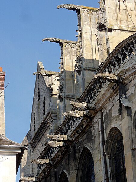 L'église Saint-Antoine est une église catholique paroissiale située au centre-ville de Compiègne, dépendant de la paroisse des Seize Bienheureuses Carmélites de Compiègne. Fondée en 1199 comme l'autre église du centre-ville, Saint-Jacques, elle relevait du patronage de l'abbaye Saint-Corneille. La construction commence au début du XIIIe siècle ; la nef, les bas-côtés et le transept conservent quelques éléments de cette époque. Profondément remaniée au XVIe siècle, l'église présente aujourd'hui une grande homogénéité de style gothique flamboyant, la façade et le chœur avec leurs collatéraux et leur déambulatoire datant essentiellement de cette période. Le chœur et le chevet, richement sculptés et d'une grande finesse, constituent les parties les plus remarquables de l'édifice. À l'intérieur, ces parties se distinguent par des supports prismatiques et des voûtes ornées de liernes et de tiercerons ; la nef et ses bas-côtés restent en revanche d'une facture plus simple. L'abside est circonscrite extérieurement par un mur en hémicycle qui dissimule deux petites sacristies entre les chapelles rayonnantes, vestige possible du chœur ancien. L'implantation de l'église est irrégulièrement orientée nord-ouest–sud-est ; elle occupe l'extrémité sud-ouest du vieux centre de Compiègne, au carrefour des rues d'Austerlitz, Saint-Antoine, des Cordeliers, Pasteur, de Paris et Notre-Dame-de-Bon-Secours. La façade occidentale, en fait tournée vers le nord-ouest, donne directement sur le carrefour, la façade méridionale ouvre sur la place Saint-Antoine et le chevet sur la rue Hersan. Au XIXe siècle des maisons mitoyennes ont été progressivement rachetées et démolies à partir de 1868 pour dégager la nef, et la rue contournant l'abside a été élargie en 1907. Les archives de la construction sont lacunaires, mais des reprises en sous-œuvre au XVIe siècle ont modifié nombre d'arcades et de voûtes ; certaines travées et voûtes des bas-côtés et du transept conservent toutefois un aspect du XIIIe siècle. Pendant la Révolution, l'église fut fermée au culte, louée comme magasin de fourrages et endommagée, puis remise au culte après 1795 ; elle perdit son statut de paroisse pour devenir succursale avant d'être rétablie comme paroisse de seconde classe par un décret royal en 1826. Une importante série d'interventions a eu lieu à partir de 1768 sous le curé Duquesnoy : suppression du mobilier et de vitraux, abattage du jubé, abaissement du clocher et démolition de clochetons, grattage et badigeonnage des murs, entraînant la perte de nombreuses œuvres d'art. L'extérieur a fait l'objet d'une restauration en 1823 et l'édifice fut classé au titre des monuments historiques en 1840 ; une campagne de restauration plus ambitieuse débute dès 1863 pour consolider voûtes et piliers menacés. Le plan comprend une nef de six travées précédée d'une courte avant-nef, deux bas-côtés, un transept non débordant, un chœur de trois travées droites suivi d'une abside en hémicycle, deux collatéraux de trois travées, un déambulatoire de cinq travées et cinq chapelles rayonnantes. La croisée du transept est plus large que les travées de la nef et l'église ne possède pas de clocher massif : un petit clocher en charpente est posé en biais sur la croisée. L'intérieur manifeste une unité stylistique flamboyante : absence de chapiteaux dans les parties flamboyantes, nervures pénétrantes se fondant dans des supports fasciculés, voûtes en arc brisé dans la nef et voûtes en cintre surbaissé dans le chœur et le déambulatoire. Le chœur se remarque par l'élévation harmonieuse de ses fenêtres, son long glacis et son réseau de voûtes complexe où des liernes et tiercerons créent un dessin presque floral, renforçant l'impression d'ensemble conçue en une même époque. Le déambulatoire, généreusement éclairé par les larges fenêtres des chapelles rayonnantes, présente un profil surbaissé des arcades et un dessin géométrique sophistiqué des nervures, tout en conservant une grande lisibilité de l'espace. À l'extérieur, la façade et le chevet affichent l'ornementation flamboyante la plus riche : deux tours octogonales encadrent la façade, une grande rosace à réseau flamboyant occupe le pignon et le portail possède un décor sculpté dont il subsiste des éléments et des vantaux en bois anciens. Le chevet se distingue par ses élégants arcs-boutants à double volée, ses balustrades ajourées et ses pinacles, qui font du chœur un exemple marquant de l'art flamboyant. Le mobilier de l'église comprend notamment deux vantaux de chêne du portail (premier quart du XIIIe siècle), des fonts baptismaux en pierre de Tournai provenant de l'abbatiale Saint-Corneille, la partie instrumentale de l'orgue de tribune (reconstruite en 1882), un vitrail ancien de l'arbre de Jessé fortement dégradé, plusieurs tableaux et une aigle-lutrin en chêne du XVIIIe siècle. S'y ajoutent des dalles funéraires médiévales et modernes aux effigies très effacées, ainsi qu'une Vierge à l'Enfant en plâtre attribuée à Jean-Jacques Caffieri, exposée dans une chapelle mais non classée.