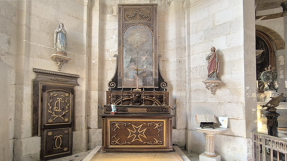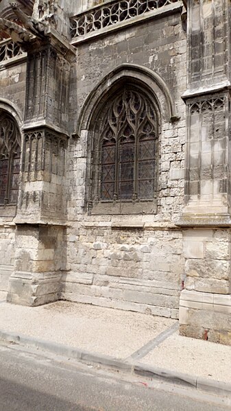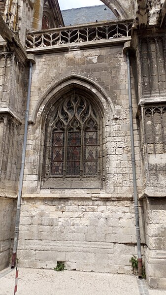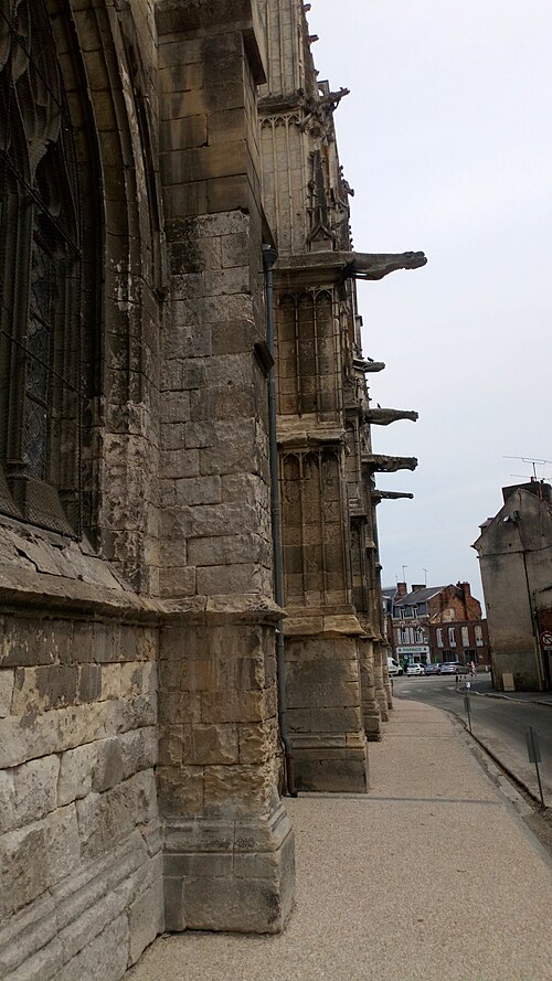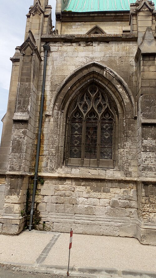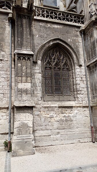 La façade occidentale, profondément remaniée à la fin du XIXe siècle dans un esprit néogothique, présente un portail central encadré de contreforts à pinacles à crochets, un tympan ajouré muni de vitraux et des voussures de style flamboyant ; une rosace surmonte le portail et la grande baie flamboyante antérieure a été supprimée. La démolition du bâtiment de la trésorerie sur le côté sud a remis au jour une baie flamboyante comparable à celle du côté nord, conférant une certaine symétrie à la façade.