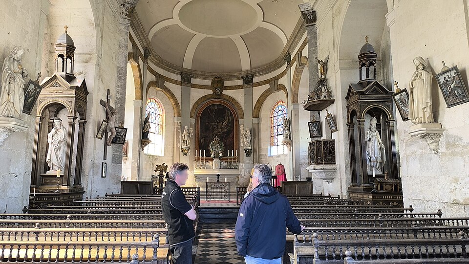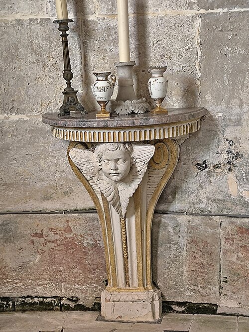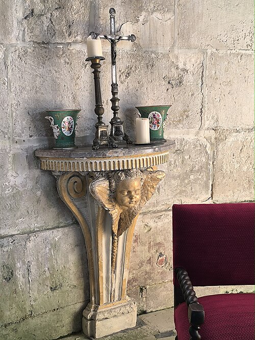 À l’entrée de l’église se trouve un fragment de pierre tombale en marbre noir daté de 1120 et représentant Jean de Conty. Les voûtes sont ornées de pendentifs de style Renaissance datant des années 1550, et l’une des clés de voûte porte les armes des princes de Bourbon-Conti, seigneurs de Conty de 1551 à 1622 ; les piliers qui supportent les voûtes présentent un profil ondulant. Contre un pilier, à droite avant d’entrer dans le chœur, un autel est dédié à la Vierge et porte les statues de la Vierge, de saint Louis et d’un pape, et l’orgue a été construit par Félix Van den Brande en 1912.