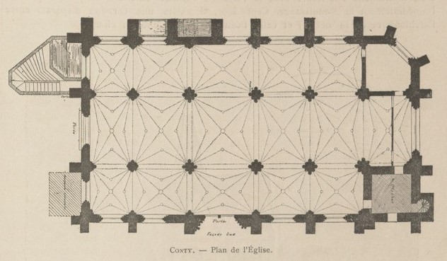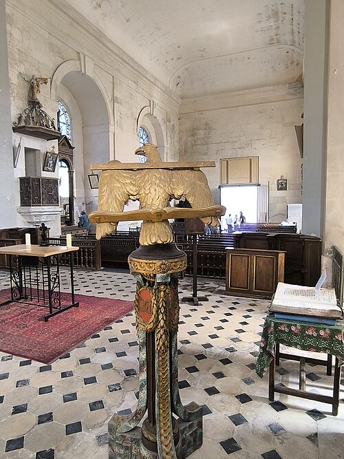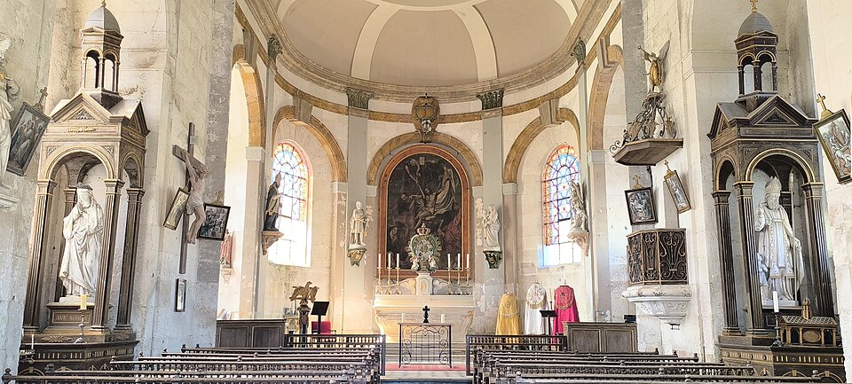 L’édifice est bâti en pierre selon un plan en croix latine ; il mesure 32,70 m de long sur 21 m de large (chœur : 15,75 m de longueur ; nef et bas-côtés : 10,75 m) et la hauteur sous voûte atteint 15,50 m. Le chœur comprend trois travées, la nef et ses collatéraux deux travées, et le transept n’excède pas la largeur de la nef et des bas-côtés.