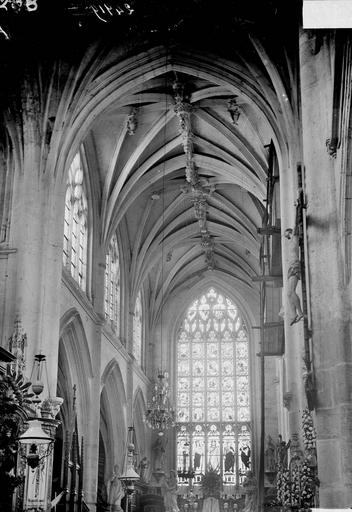 Les voûtes du chœur s’élèvent à 15,50 mètres ; leurs arcs forment des compartiments ornés de pendentifs représentant notamment saint Maurice à cheval, un crucifix à double face encadré par quatre anges et les armoiries d’un seigneur de Conty. Le maître-autel, daté du XVIIe siècle, est surmonté d’un grand Christ du XVe siècle et comporte en dessous un bas-relief de la Vierge vue de profil ; de part et d’autre du tabernacle se trouvent les statues des quatre évangélistes. Les grilles en fer forgé datent de l’époque Louis XV, et quatre statues de François Cressent — Vierge à l’Enfant, saint Joseph, sainte Thérèse et saint Jean de la Croix —, provenant du couvent des Carmes d’Amiens, complètent la décoration.