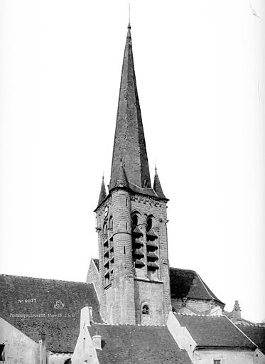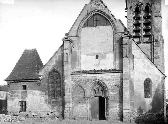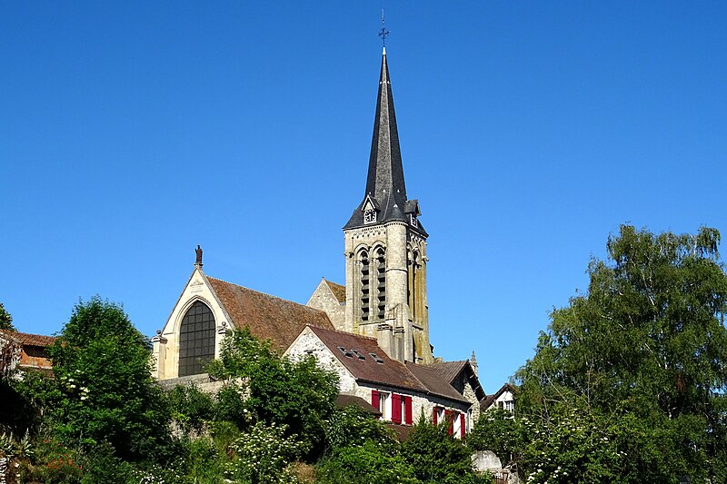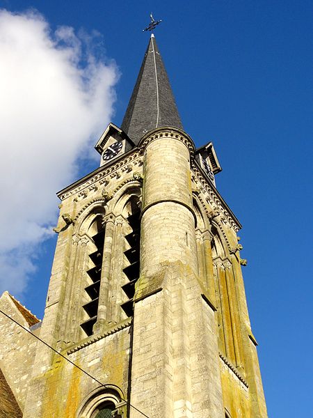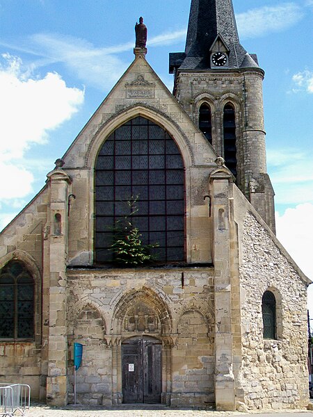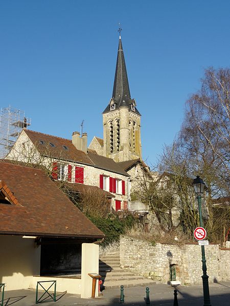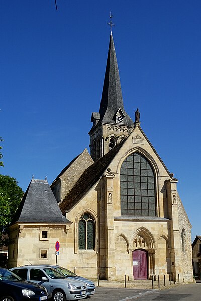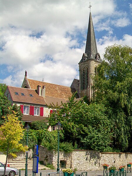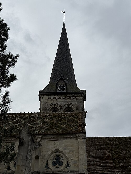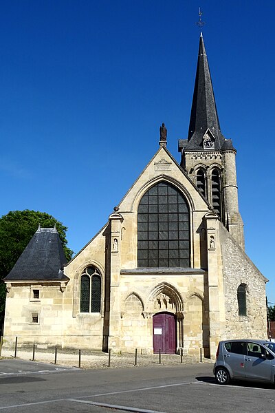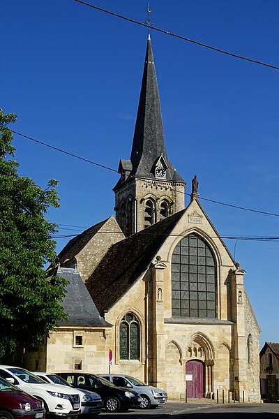 L'église Saint-Aquilin, paroissiale catholique située à Fontenay-en-Parisis, domine la butte centrale du village et marque fortement le paysage par sa flèche culminant à 44 m. L'édifice mesure 42 m de longueur et 17 m de largeur, dimensions remarquables pour un bourg rural. Sa construction s'étend du XIe au XVIe siècle : des vestiges romans subsistent dans la partie inférieure du mur méridional du bas-côté sud et dans la base et le premier étage du clocher, tandis que la nef relève du XIIe siècle, le chœur du XIIIe siècle et certaines modifications de la Renaissance. La nef, reconstruite au troisième quart du XIIe siècle, présente de grandes arcades en tiers-point non moulurées reposant sur des piliers cylindriques et des chapiteaux sculptés de feuillages relevant du gothique primitif. Une charpente en carène renversée, posée au XVIe siècle, couvre la nef et les bas-côtés et a obstrué la plupart des fenêtres hautes. Le chœur, bâti en plusieurs campagnes entre le début et le milieu du XIIIe siècle, est composé de travées droites voûtées en ogives sexpartites et d'une abside à pans coupés entourée d'un déambulatoire réduit à trois travées sans chapelles rayonnantes. Cette disposition du chevet, sans équivalent dans la région, associe une élévation en deux niveaux et des fenêtres hautes sans triforium. Les grandes arcades diffèrent entre le côté nord et le côté sud du chœur : au nord les colonnettes s'arrêtent sur des tablettes, au sud elles descendent jusqu'au sol et les arcades sont à double rouleau adossées à des piliers cruciformes. Le clocher, dont le second étage a été ajouté au XIIIe siècle, combine une base romane et un beffroi gothique richement sculpté, terminé par une flèche octogonale en ardoise. La façade occidentale, remaniée à la Renaissance, conserve en bas trois arcatures en tiers-point et un tympan sculpté ; la partie supérieure est percée d'une grande baie en arc brisé dépourvue de remplage. La chapelle baptismale, édicule Renaissance élevé au nord-ouest en 1583, présente une corniche sculptée, une frise de triglyphes et des baies rectangulaires sur deux niveaux. Les travaux de la fin du XVIe siècle ont en outre entraîné la reconstruction extérieure du déambulatoire et des fenêtres hautes de l'abside, ainsi que l'exhaussement des murs des bas-côtés. L'église a été classée monument historique en 1886 ; sa restauration extérieure a été menée à son terme en 2013, tandis que l'intérieur reste largement celui du milieu du XIXe siècle. L'édifice est visible de loin grâce à sa situation en promontoire et s'atteint principalement par la rue de l'Église ou par le chevet, la façade occidentale donnant sur la place Stalingrad. Les origines documentaires de Fontenay remontent à des actes médiévaux, et la première mention d'une église locale apparaît au début du XIIe siècle dans une charte liée au prieuré Saint-Martin-des-Champs. Une dédicace de 1451 atteste du double patronage de saint Vincent et de saint Aquilin ; des reliques attribuées à saint Aquilin et un fragment de la Vraie Croix conservés dans l'église ont favorisé les pèlerinages et les dons qui expliquent l'ampleur du bâtiment. Les campagnes de construction ont laissé des marques visibles : baies romanes fortement ébrasées dans le soubassement, archivoltes, chapiteaux à feuilles plates et tailloirs moulurés reflétant la transition du roman vers le gothique primitif. À l'intérieur, la nef et le chœur communiquent avec les bas-côtés par de larges arcades en tiers-point ; les chapiteaux de la nef, variés, portent palmettes et feuillages stylisés et témoignent d'un parti non prévu pour le voûtement de la nef. Les fenêtres hautes bouchées du XIIe siècle sont encore lisibles sur les murs de la nef, une seule subsistant au-dessus de la dernière travée sud ; la grande baie occidentale du XVIe siècle compense en partie cet obturage. Les bas-côtés conservent des voûtes en carène renversée et, dans le bas-côté sud, deux étroites baies romanes basses évoquent la chapelle primitive. La base du clocher présente des chapiteaux soignés à faisceaux de colonnettes et une sculpture régulière qui s'apparente plutôt à la première période gothique. Le déambulatoire, sans chapelles rayonnantes et réduit à trois travées, comporte des chapiteaux dont la disposition évoque des solutions observées à Royaumont et dans quelques églises voisines. Le mobilier comprend des éléments classés monuments historiques : copies de tableaux de Nicolas Poussin, la partie instrumentale et le buffet de l'orgue de tribune, quinze stalles provenant de l'abbaye Saint-Victor, une chaire à prêcher, des sièges et encadrements des XVIIe et XVIIIe siècles, ainsi que les vantaux en bois du collatéral nord. Sous l'Ancien Régime la cure relevait du prieuré Saint-Martin-des-Champs et de l'archidiocèse de Paris ; après la Révolution la paroisse a été rattachée au diocèse de Versailles puis, lors d'une réorganisation, au diocèse de Pontoise, et elle est aujourd'hui desservie par le curé de Goussainville. L'église conserve des inscriptions et des dalles funéraires rappelant l'importance de familles locales, notamment les Pluyette, donateurs et titulaires de la cure sur plusieurs générations. Extérieurement, le chœur en pierre de taille, sobre dans son décor, présente des contreforts poursuivis par des arcs-boutants, des pinacles et des vases qui rythment le chevet, tandis que la toiture affiche des tuiles de trois couleurs formant des losanges à motifs verts.
