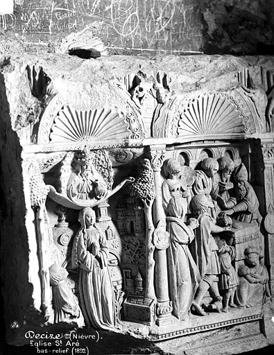 L'église Saint-Aré se situe dans le centre ancien de Decize, entre la Loire et la Vieille Loire, dans le sud de la Nièvre. Elle est dédiée à saint Aré, évêque de Nevers, et la tradition rapporte qu'à sa mort on le plaça dans une barque sur la Loire qui s'échoua à Decize, où il fut inhumé. La crypte actuelle a été aménagée autour d'une grotte et peut-être d'un ancien temple gallo-romain ; une statue de la Vierge dite Notre-Dame de sous-terre y fut longtemps vénérée pour ses miracles. Le chœur et les absides, vestiges des XIe et XIIe siècles, sont les parties les plus anciennes conservées ; l'édifice a ensuite été profondément transformé aux XVe et XIXe siècles. En 1842, l'effondrement des murs du château surplombant l'église détruisit la nef, une partie du transept et plusieurs chapelles latérales. Le chœur et la crypte ont été classés au titre des monuments historiques dans la liste de 1875, tandis que le reste de l'église a été inscrit le 18 janvier 1991. Le dimanche 27 décembre 2020, une voiture pénétra violemment dans l'édifice depuis le parking avant une messe, détruisant le portail et un pilier de bois soutenant le balcon et l'orgue, et blessant trois personnes.