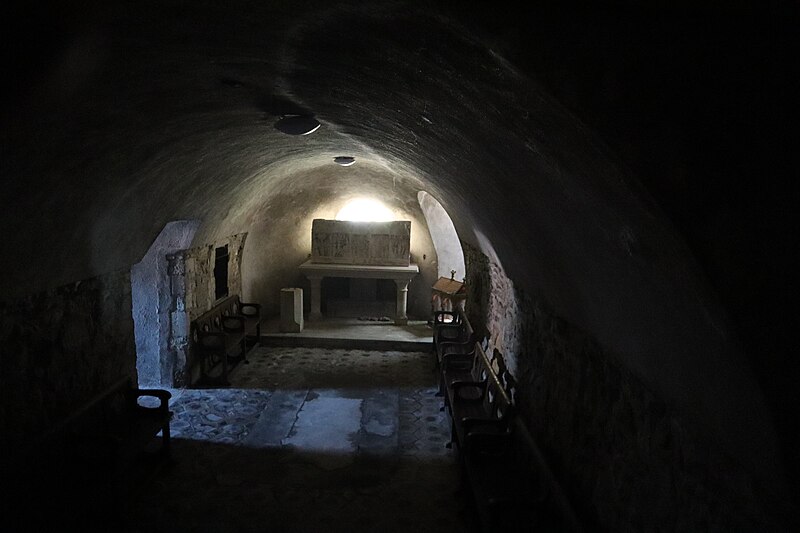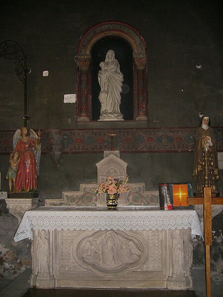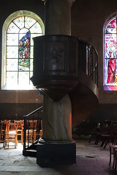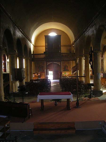 L'église renferme plusieurs objets remarquables. Dans la crypte se trouvent une statuette de pierre décapitée du XVIe siècle portant des armoiries, une Vierge à l'Enfant en pierre du XVe siècle, un retable sculpté en pierre du XVIe siècle mesurant 80 cm de haut sur 150 cm de large et représentant cinq saynètes séparées par des pilastres et surmontées d'une arcature de style Renaissance, avec aux extrémités les figures agenouillées du donateur et de la donatrice et quelques écussons d'armoiries ; ce retable, restauré en 1974, est en deux morceaux et une scène manque presque entièrement. On y conserve aussi une statue en bois de saint Paul du XVIIIe siècle d'environ un mètre, une plaque funéraire gravée et sculptée du XVIIe siècle haute de 1,40 m et large de 80 cm relative à Jacques Salonnier, sieur de Lagarde, une autre Vierge à l'Enfant au visage abîmé, une statue de pierre d'un moine chartreux amputée d'un bras, un bas-relief du XVIe siècle représentant le Christ au jardin des Oliviers et un groupe en bois sculpté illustrant l'éducation de la Vierge par sainte Anne. Dans la partie haute de l'église se trouvent deux bénitiers en bronze en forme de vasque de 70 cm de diamètre munis de quatre anses et ornés d'un bandeau inscrit et de médaillons gravés, dix-huit stalles en bois taillé du XIXe siècle, une peinture sur toile intitulée L'Institution du rosaire datant du XVIIIe siècle, ainsi que les deux vantaux en bois du portail latéral composés de panneaux à serviettes séparés par des colonnettes.