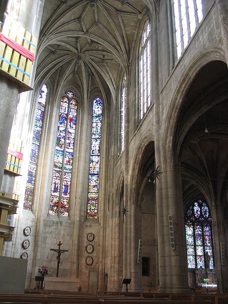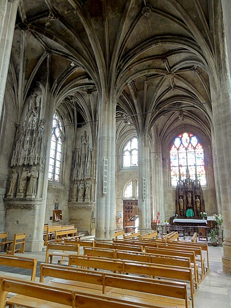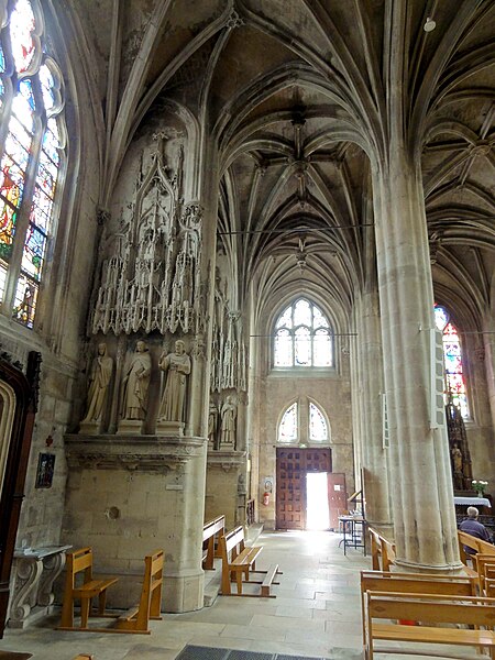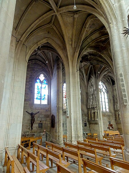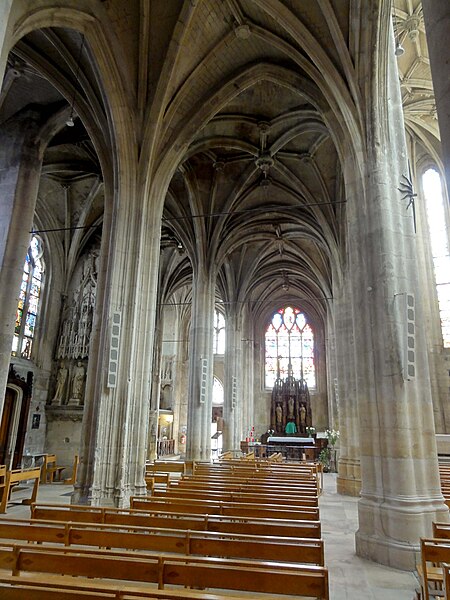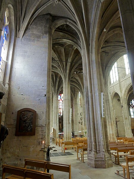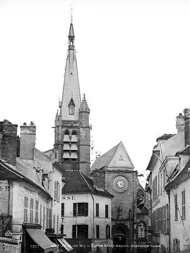 L'église Saint-Aspais, située sur la rive droite de la Seine à Melun, est attestée dès 1080 par l'archevêque de Sens Richer. Elle succède à un édifice gothique plus modeste dont des éléments ont été retrouvés lors de fouilles récentes ; l'implantation est liée à l'extension de la ville sur la rive droite. À la fin du Moyen Âge la paroisse, devenue la plus peuplée de Melun, entreprend un vaste agrandissement : la façade et les premières travées de la nef sont reconstruites au début du XVIe siècle, puis le chevet est refait sous la direction de l'architecte parisien Jehan (Jean) de Félin à partir de 1517. Les travaux, marqués par un style gothique flamboyant tardif orné d'éléments renaissants, connaissent des interruptions et des litiges entre la fabrique et l'architecte, et sont finalement achevés au milieu du XVIe siècle par des maîtres locaux appliquant les plans initiaux. L'ensemble présente une homogénéité stylistique remarquable malgré l'étroitesse du site, qui impose un plan irrégulier en trapèze et des solutions architecturales contraintes. Le clocher, la partie la plus ancienne, remonte à la fin du XVe siècle et a été réparé et remanié à plusieurs reprises; sa flèche et son beffroi ont été détruits lors des bombardements de 1944. Aux XVIIe et début XVIIIe siècles, l'édifice subit une série d'effondrements et de réparations importantes, conduites sous la direction d'architectes et d'artisans variés, financées par des impositions paroissiales et des dons de fidèles. Sous la Révolution l'église échappe à la destruction en étant utilisée comme fabrique de salpêtre, puis le culte reprend avant la fin du siècle. Au XIXe siècle une campagne de restauration menée par l'architecte Buval comprend l'édification d'une sacristie nord et des travaux sur la tour, qui suscitent des critiques pour leur traitement stylistique. Classée au titre des monuments historiques en 1914, Saint-Aspais conserve des vitraux remarquables de la Renaissance ainsi qu'un mobilier liturgique et des reliques, dont le cilice attribué à saint Louis. Gravement endommagée pendant la Libération de Melun en août 1944, l'église fait l'objet d'un chantier de restauration engagé dès 1945 sous la direction d'Albert Bray, puis repris par Jean Creuzot, qui permet la réouverture progressive au culte et la réinstallation de vitraux anciens. D'autres campagnes de restauration ont été menées dans la seconde moitié du XXe siècle, notamment en 1991 et entre 1997 et 1999, qui ont permis de consolider la structure et de valoriser les vitraux anciens et contemporains. Aujourd'hui Saint-Aspais reste l'église paroissiale principale de Melun, remarquable par son plan contraint, son homogénéité stylistique flamboyante avec touches renaissantes et la qualité de ses vitraux et de son mobilier.