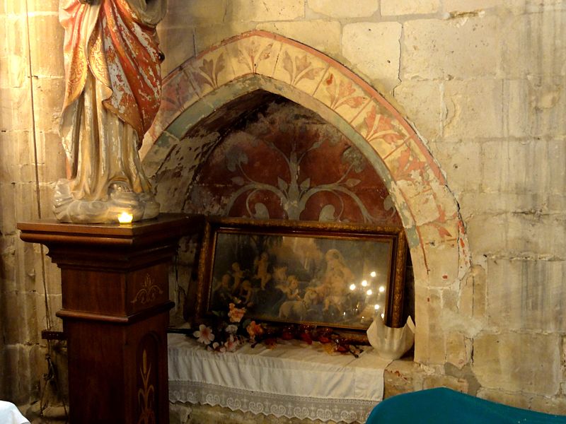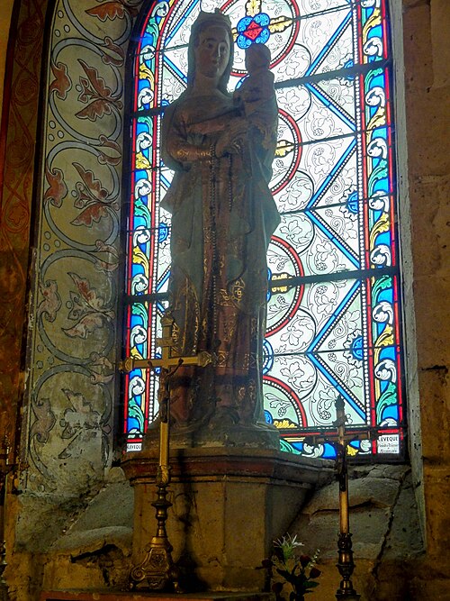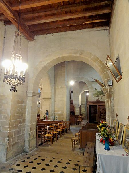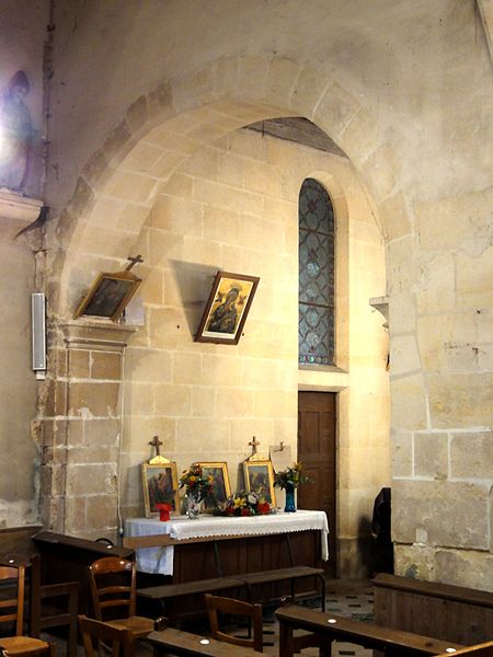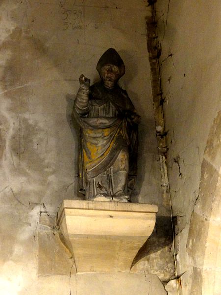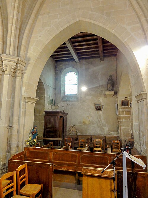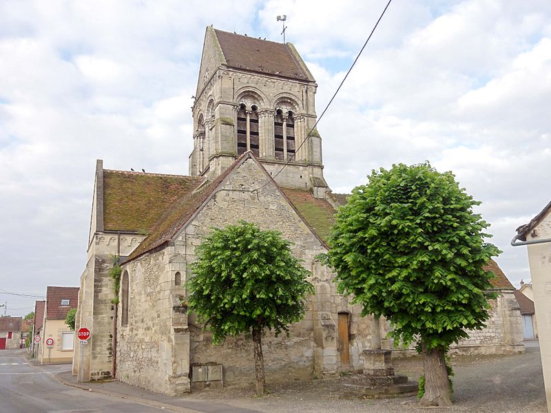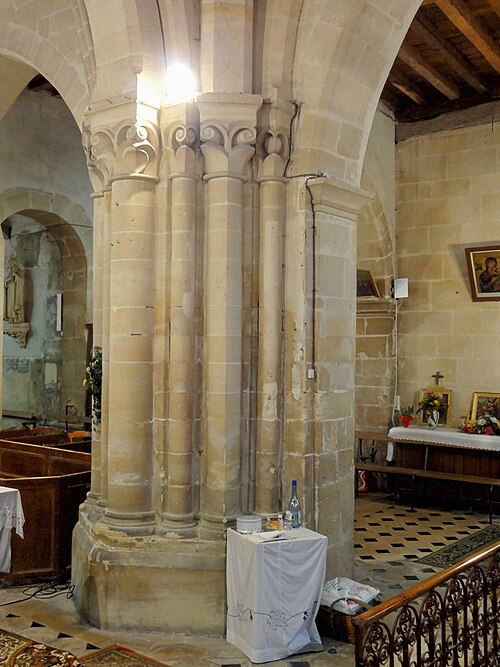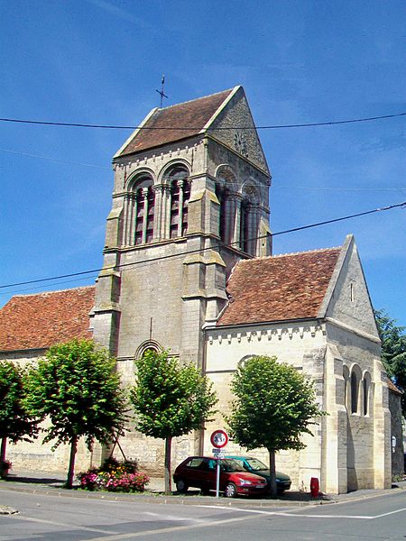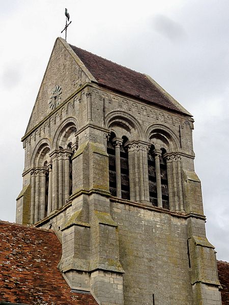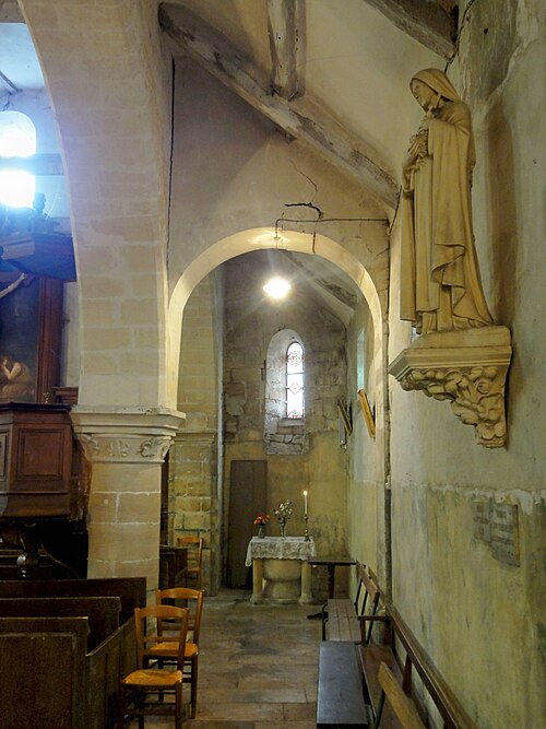 L'église Saint-Aubin, également dédiée à sainte Geneviève, est une église catholique paroissiale de Cauffry (Oise), classée au titre des monuments historiques par arrêté du 21 novembre 1930 et affiliée à la paroisse Saint-Martin du Liancourtois. Elle se situe dans le village ancien de Cauffry, près de la voie ferrée et de la gare de Liancourt-Rantigny ; le centre communal s'est déplacé au nord et l'édifice occupe aujourd'hui une position plutôt périphérique, la façade méridionale donnant sur la rue Jean-Rival et le chevet sur la rue du 1er Septembre. L'église présente un plan d'origine très simple fréquent dans le Beauvaisis aux XIe-XIIe siècles : une nef-grange, un clocher interposé en bâtière et un chœur à chevet plat d'une seule travée. La nef est d'origine romane mais a été fortement remaniée : rehaussement, adjonction d'un bas-côté nord au XIIIe siècle, ajout d'un porche et reconstruction du mur méridional ; seuls subsistent nettement le linteau et le tympan du portail ainsi que la fenêtre occidentale de la nef. Le clocher en bâtière et le chœur datent du dernier quart du XIIe siècle et représentent la période de transition du roman au gothique, conservant toutefois des caractéristiques romanes tout en étant voûtés d'ogives dès l'origine. L'étage de beffroi du clocher, le plus remarquable de l'édifice, ouvre sur chaque face par deux baies gémelées en plein cintre, elles‑mêmes subdivisées en deux petites baies et encadrées de colonnettes à chapiteaux formant des faisceaux. Ces baies, les archivoltes toriques, les colonnettes décorées de crochets et la corniche beauvaisine caractérisent un type régional apparu à la fin du XIIe siècle dont Cauffry offre l'une des rares variantes romanes. Des remaniements postérieurs ont ajouté un porche et un bas-côté, rehaussé la nef et adossé deux chapelles au nord ; ces chapelles, dépourvues d'ornementation intérieure et couvertes de plafonds en bois, sont difficilement datables. L'église est orientée de manière approximative et ne comporte qu'un accès principal par le portail occidental ; elle n'a jamais eu de transept, comme l'atteste la fenêtre romane au rez-de-chaussée du clocher. À l'intérieur, la nef est couverte d'une fausse voûte en berceau de plâtre sans subdivision en travées ; elle reçoit la lumière par trois fenêtres hautes côté sud et une fenêtre sous le pignon ouest. Une pile centrale sépare la nef du bas-côté nord par deux grandes arcades brisées ; son chapiteau rond, qualifié de roman, est sculpté de huit feuilles à cinq lobes. Le bas-côté conserve un caractère rustique avec une charpente partiellement apparente, un dallage en pierre, une petite baie romane à l'ouest, et une communication vers la chapelle nord de la base du clocher par une arcade en anse de panier. La base du clocher et le chœur forment un ensemble homogène : leurs chapiteaux, aujourd'hui grattés et regrattés, présentent des enroulements, des volutes et des feuilles de nénuphar, et soutiennent des voûtes d'ogives au profil archaïque. Le chevet comporte un triplet de baies en plein cintre dont la baie centrale est plus large et plus haute ; les ébrasements et le formeret présentent une polychromie non datée, la plus lisible représentant des vignes. Du côté du chœur se trouve une piscine liturgique également décorée ; la baie méridionale du chœur a apparemment été retouchée. Les deux chapelles nord sont de plan carré, similaires en dimensions, intercommuniquent par une arcade en plein cintre et ont des plafonds en bois sans décor religieux ; l'une d'elles a été partiellement rattachée à la sacristie par subdivision intérieure. Extérieurement, le clocher est flanqué de contreforts orthogonaux, percé de fenêtres abat-son gémelées inscrites dans des doubles archivoltes et surmonté d'une corniche beauvaisine formée de petites arcatures et de modillons. Le chevet affiche des corniches plus saillantes, des modillons sculptés partiellement en masques et des contreforts à ressauts caractéristiques du gothique primitif, tandis que l'ornementation des fenêtres reste sobre. Au nord de la chapelle latérale se trouve une ancienne croix de cimetière classée, à socle octogonal sculpté et soubassement traité en degrés. L'église conserve plusieurs éléments de mobilier classés : les fonts baptismaux du début du bas-côté, datés vers 1230, une Vierge de Pitié en pierre calcaire peinte du XVIe siècle accrochée dans la nef, et une Vierge à l'Enfant grandeur nature du second quart du XVIe siècle, très restaurée et polychromée au XIXe siècle, placée dans la chapelle latérale du chœur. La chaire à prêcher existe encore, ainsi que plusieurs statues et bancs anciens portant des plaques de paroissiens, mais ces éléments ne sont pas classés.